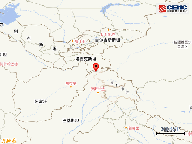 【點新聞報道】據中國地震台網正式測定,10月17日20時15分在巴基斯坦發生5.3級地震,震源深度10公里,震中位於北緯36.70度,東經72.85度,距我國邊境線最近約151公里。