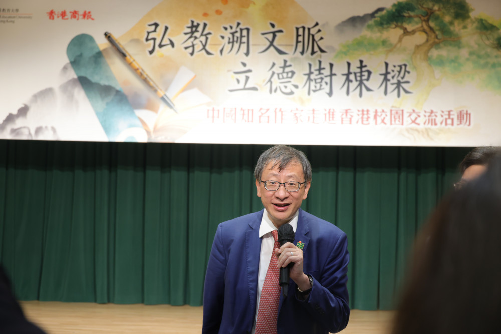 教大校長李子建教授在啟動禮上致歡迎辭表示,活動以「弘教溯文脈 立德樹棟樑」為主題,希望通過文學與教育的深度交融,增強師生對國家與文化的認同感,激發學生對中國歷史文化的熱愛與對生活的思考。他又特別感謝兩位作家帶來的作品,引導學生思考如何在新時代中守住文化根脈,實現精神上的獨立自主。