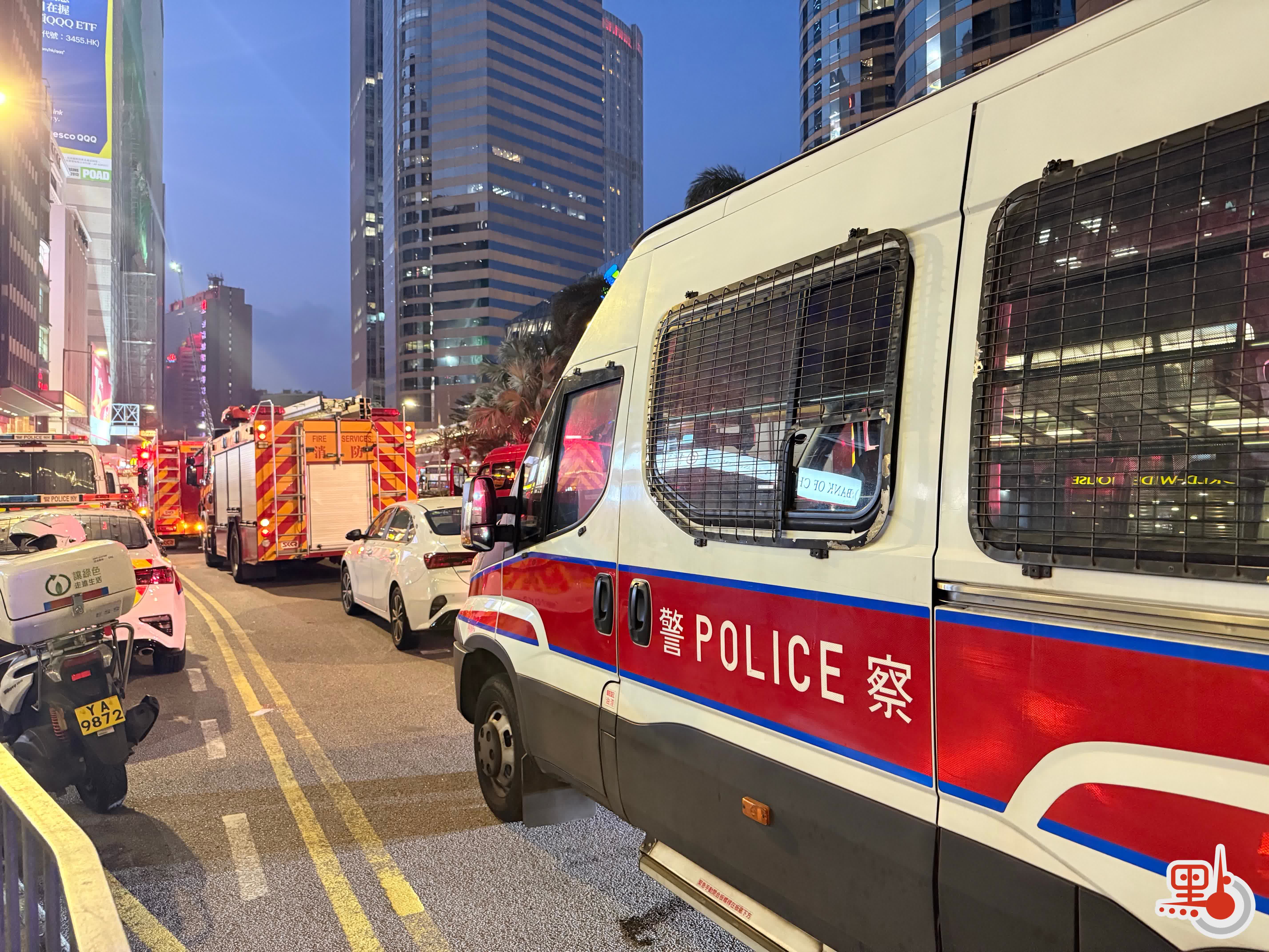 點新聞記者在現場看到,起火地點旁邊的德輔道中也已拉起警戒線,人行道設柵欄並有警員看守,交通及行人通行受阻。現時德輔道已封路,車輛無法通過,提醒市民繞行。干諾道中擠滿警車、消防車、救護車,極其擠塞。