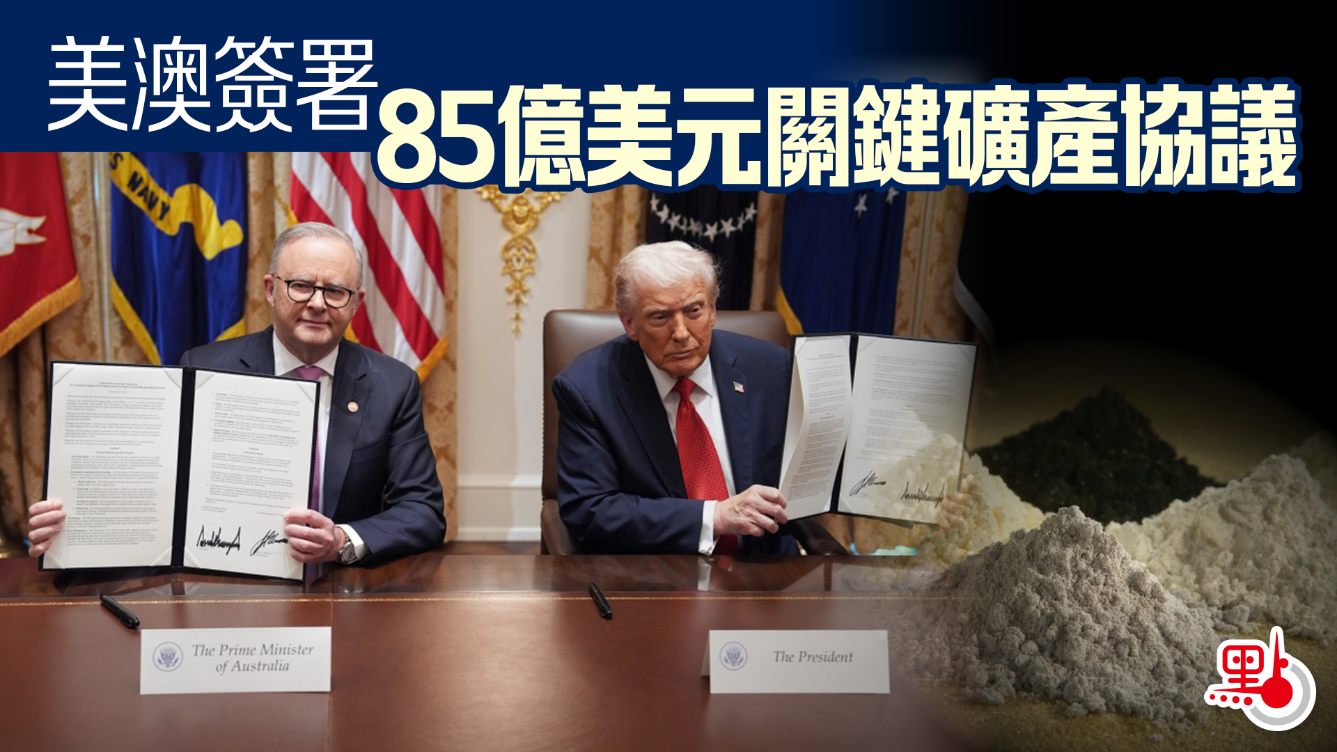 【點新聞報道】綜合外媒報道,當地時間10月20日美國總統特朗普與澳大利亞總理阿爾巴尼斯在白宮簽署了一項價值85億美元的關鍵礦產協議。