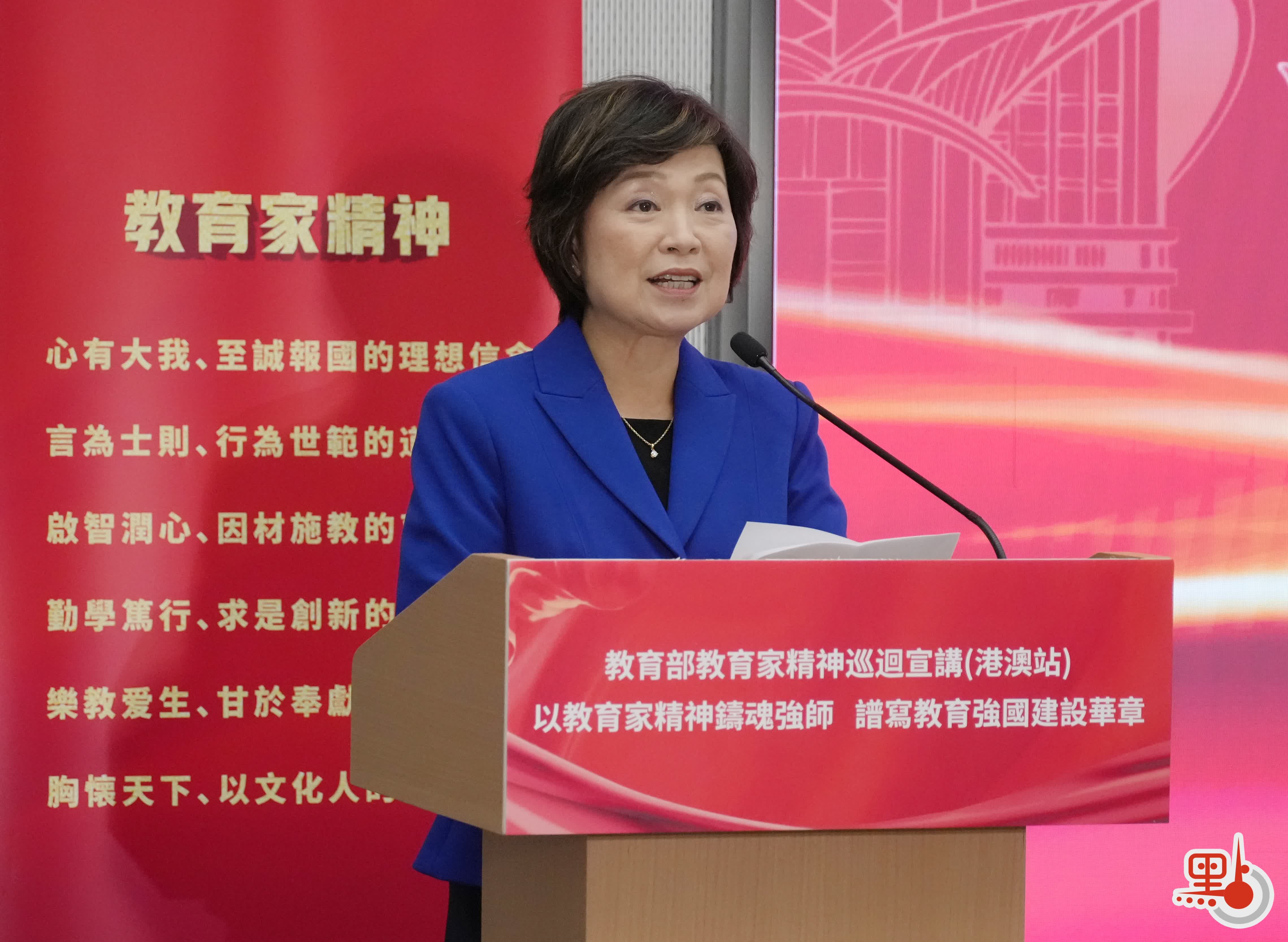 教育局局長蔡若蓮致辭時表示,教師作為立教之本、興教之源,習近平主席一直高度重視教師隊伍建設,提出了中國特有的教育家精神。《教育強國建設規劃綱要(2024—2035)》提出實施教育家精神鑄魂強師行動。以教育家精神引領新時代教師隊伍建設,是建設教育強國的重要任務,也是實現中國式現代化、民族復興的必由之路。