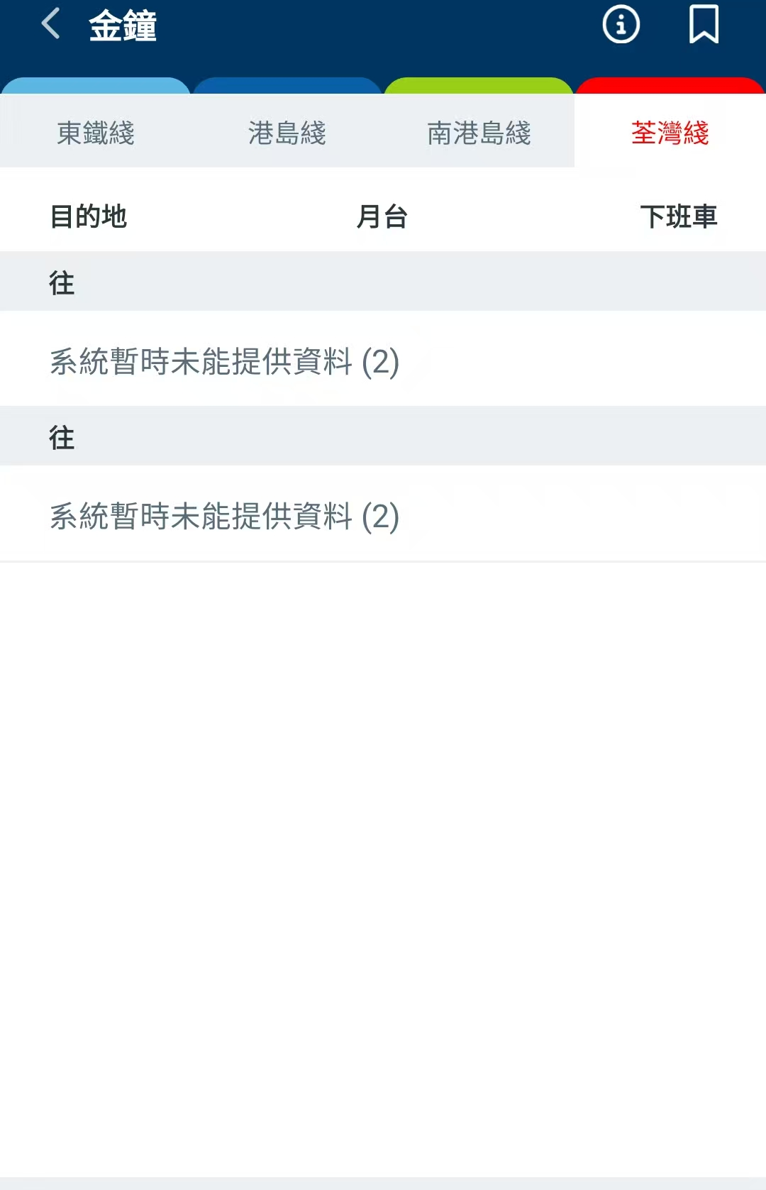 點新聞記者查詢港鐵MTR官方APP發現,其他港鐵綫路都是正常運作,但查詢荃灣綫列車安排時就會顯示「系統暫時未能提供資料」。