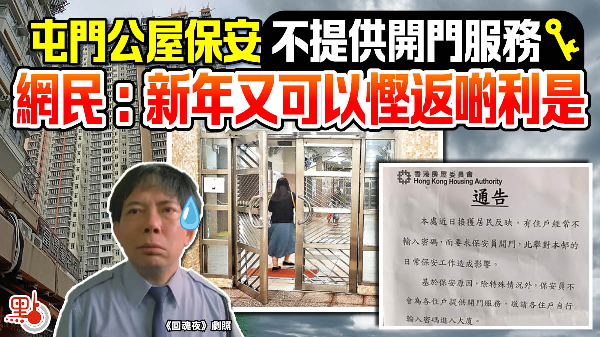 【點新聞報道】管理員的職責是防止未經許可人士進入大廈,近日屯門有公屋發出通告,表示基於保安原因,不會為住戶提供開門服務,獲網民一面倒支持。