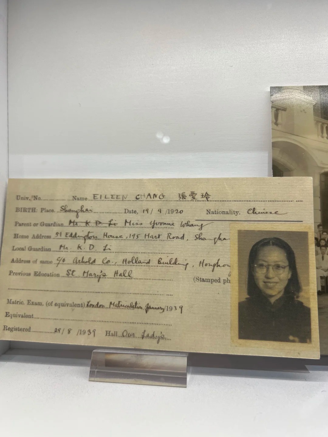 📚 珍稀文獻首展:張愛玲1939年港大入學證明文件,以及從未公開展出的酒店賓客簽名簿複本。