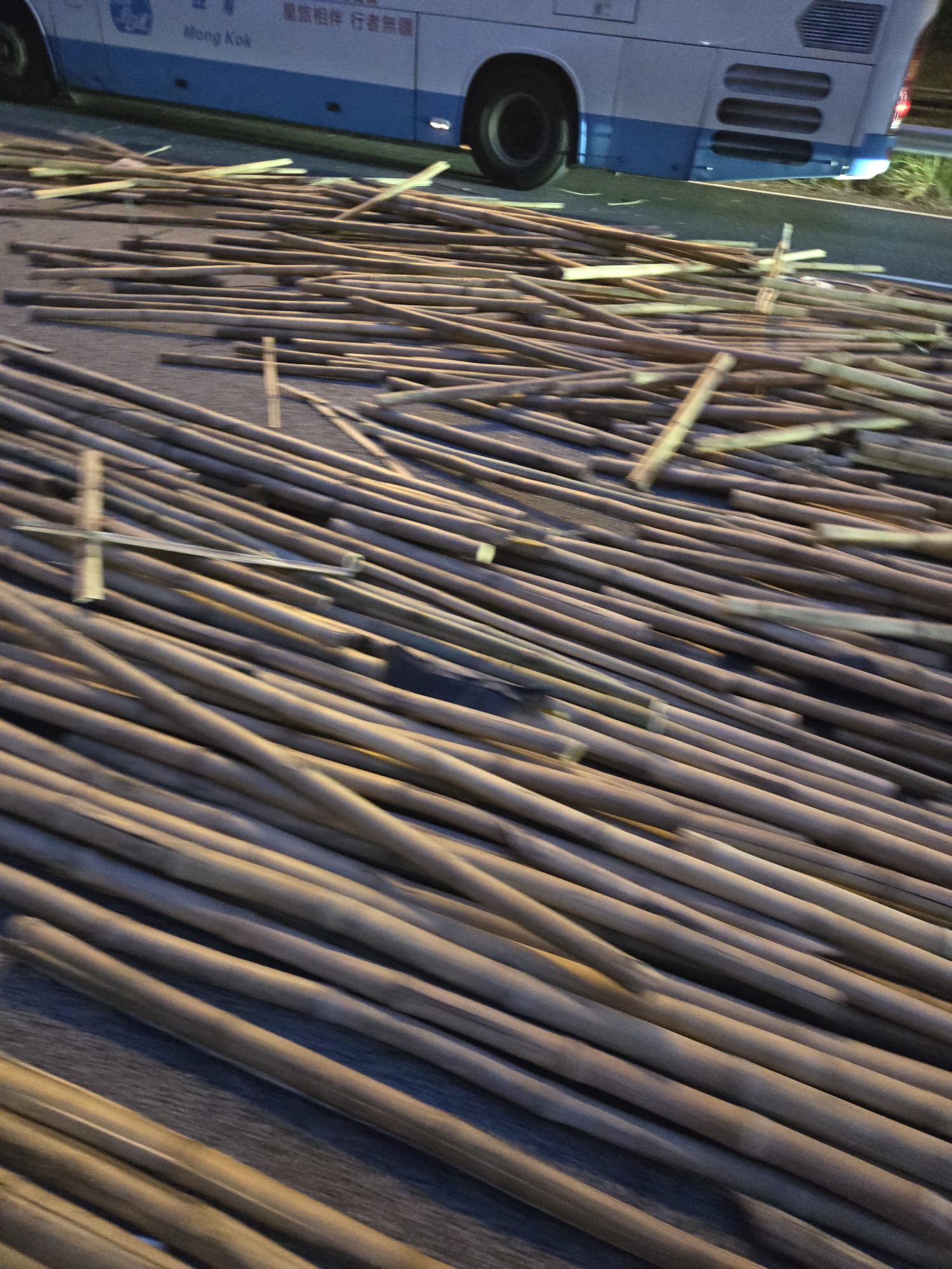 【點新聞報道】今晚(11月1日)6時31分,有網民在社媒發帖稱在青朗公路疑似有大量柱狀障礙物散落地面。