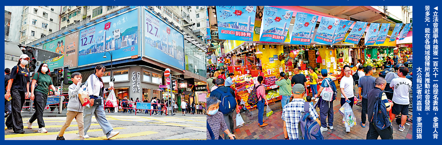 2025年立法會換屆選舉提名期昨日(6日)結束。10個地方選區、28個功能界別及選舉委員會界別的選舉主任於過去兩周的提名期內共接獲161份提名表格,是新選制實施以來參選人最多的一屆。參選人背景多元,有資深專業人士、有青年創業者、有地區人士、有學者、有運動員、有文藝工作者,五光十色,展現均衡參與的積極氛圍。