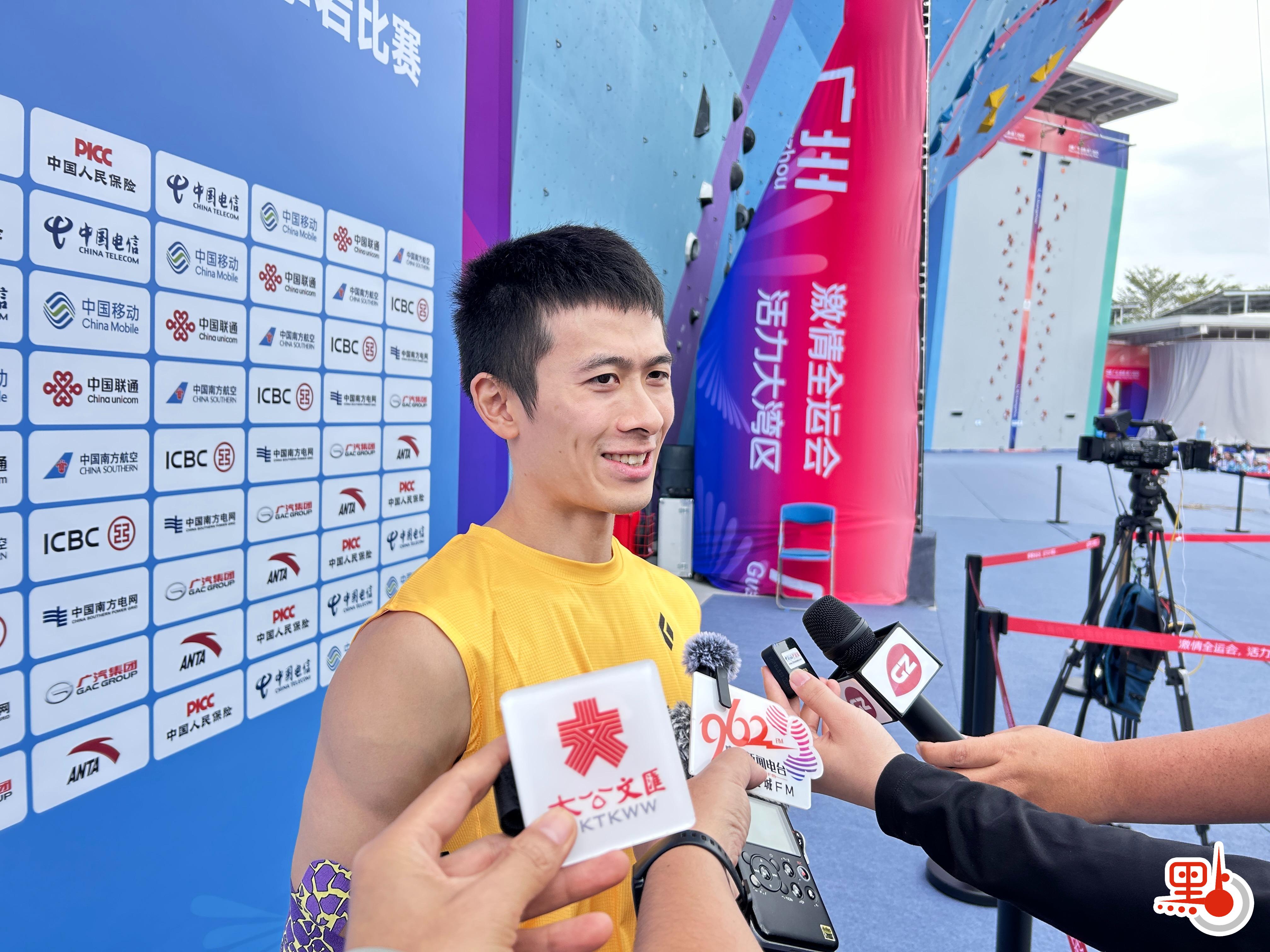 【點新聞報道】11月12日,全運會攀岩項目比賽在廣州大學城體育中心攀岩場拉開帷幕,港隊派出7人隊伍參與角逐,創下全運會最大規模陣容參賽歷史。在當日上午舉行的男子難度預賽中,香港名將陳翔志以第八名晉級決賽。陳翔志賽後表示,今次比賽天氣好,場館設施亦很先進,很享受比賽過程。他說,今次參賽選手水平都很高,競爭很激烈,將全力以赴爭取更好表現。