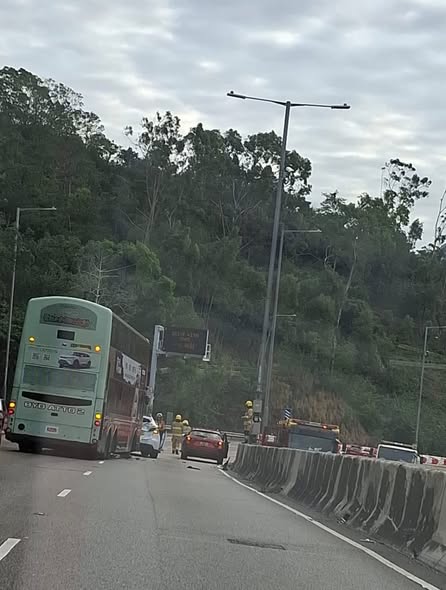 龍翔道2私家車及巴士相撞釀3傷 往觀塘交通擠塞現車龍
