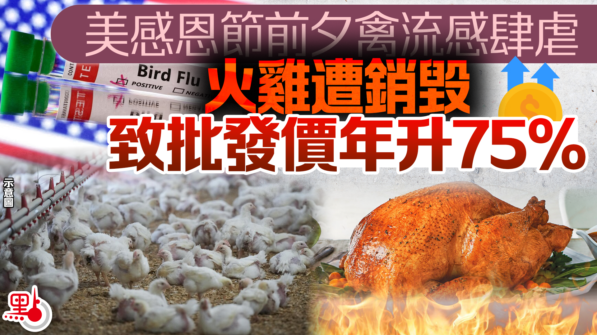 【點新聞報道】現在距離美國感恩節還有兩星期,但消費者早已得悉「主角」火雞不斷漲價,可能需要尋找其他食物取代火雞。火雞漲價的主因是供應鏈承受壓力,高致病性禽流感在各地肆虐,當局單在過去兩個月已經銷毀超過130萬隻火雞,全國火雞存活量跌至近40年低點,導致批發價格自2024年10月以來上漲75%。