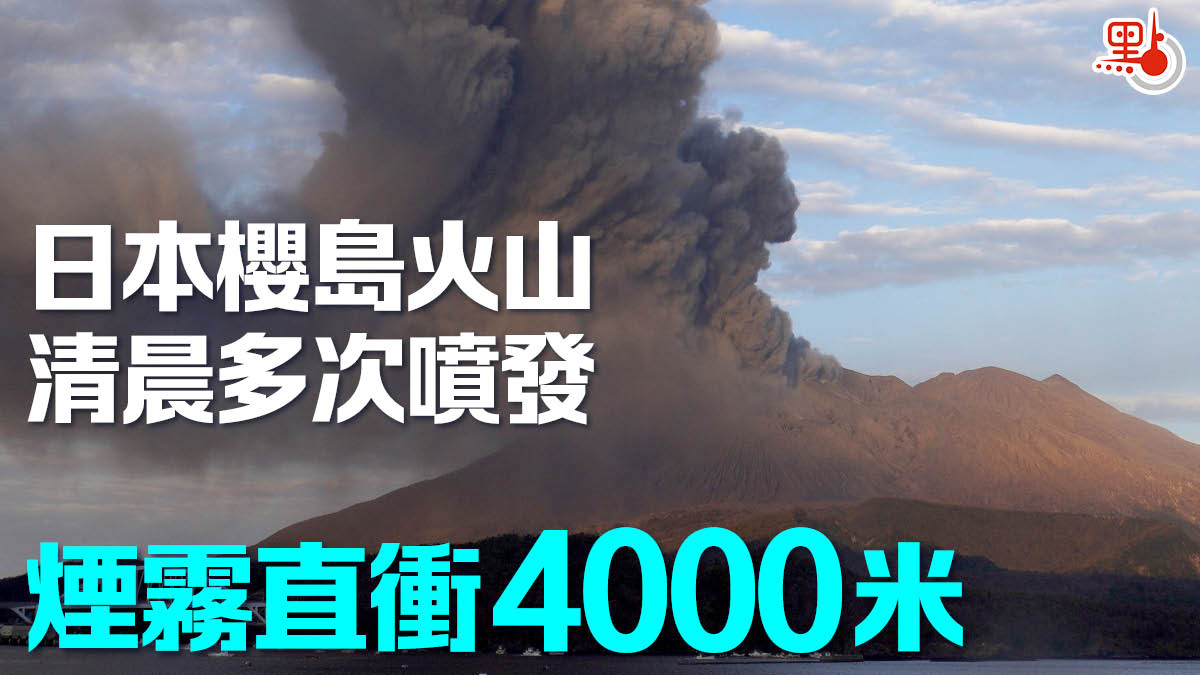 日本櫻島火山清晨多次噴發 煙霧直衝4000米