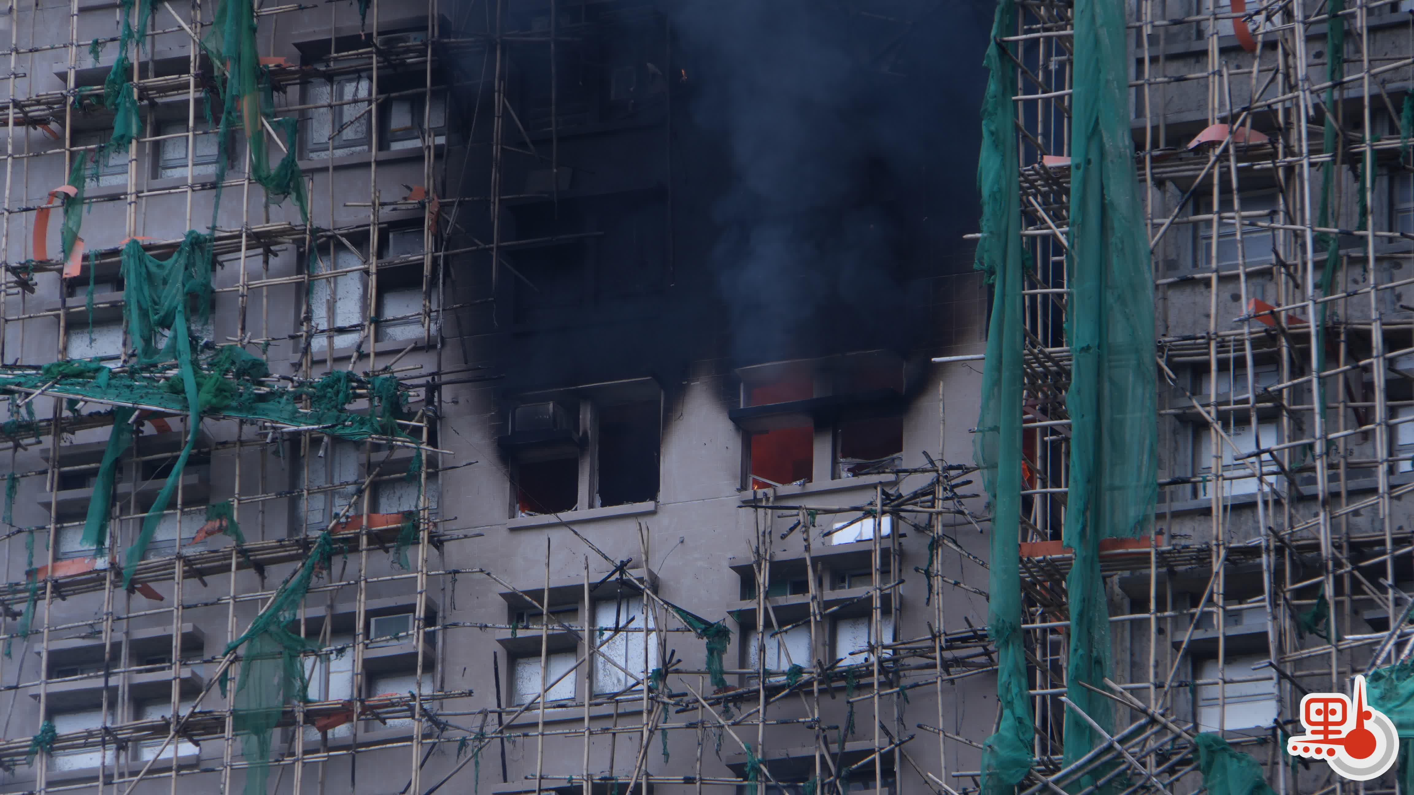 (多圖)宏福苑五級火|多棟大廈牆體燒黑濃煙滾滾 消防現場持續救援