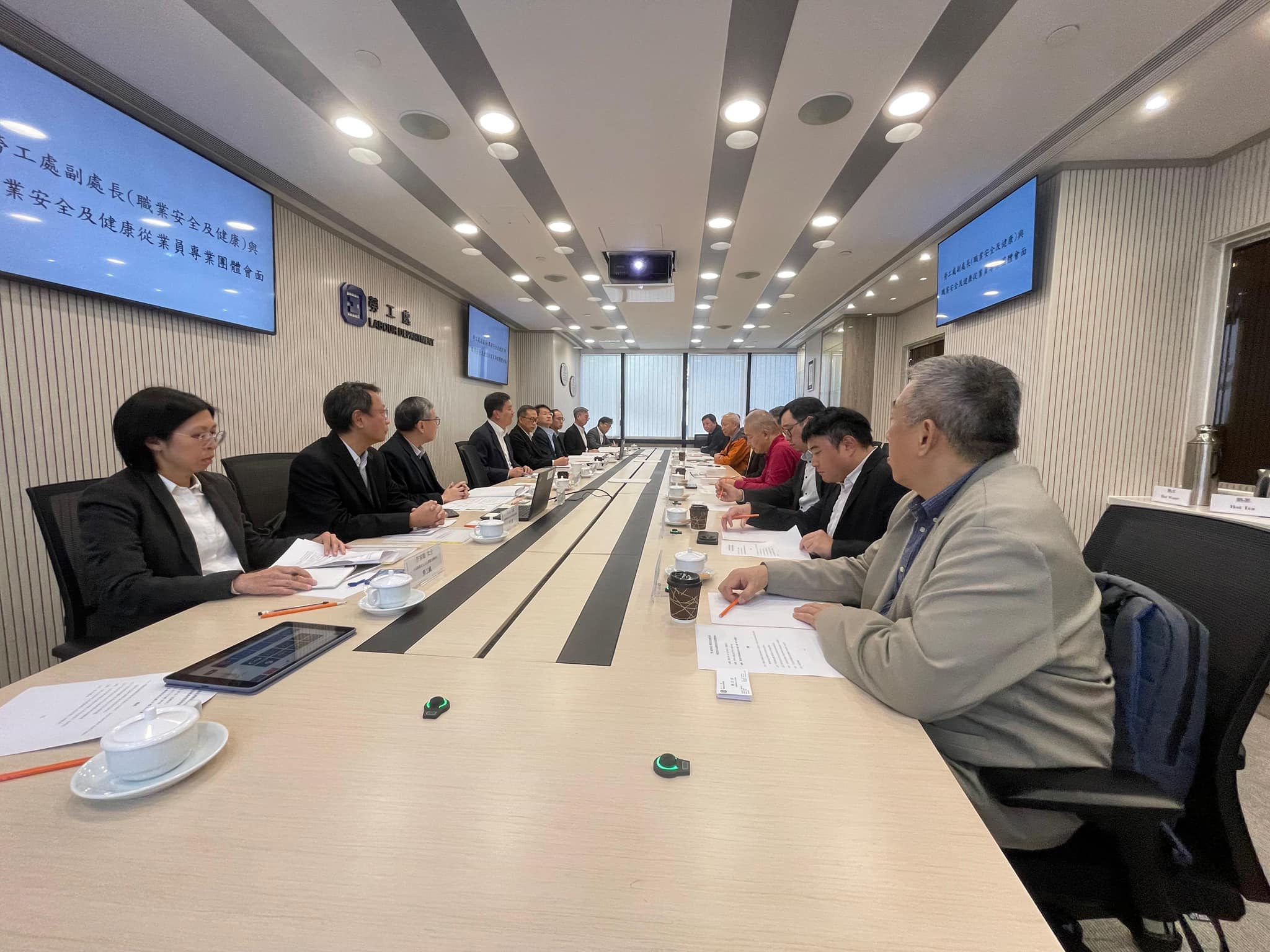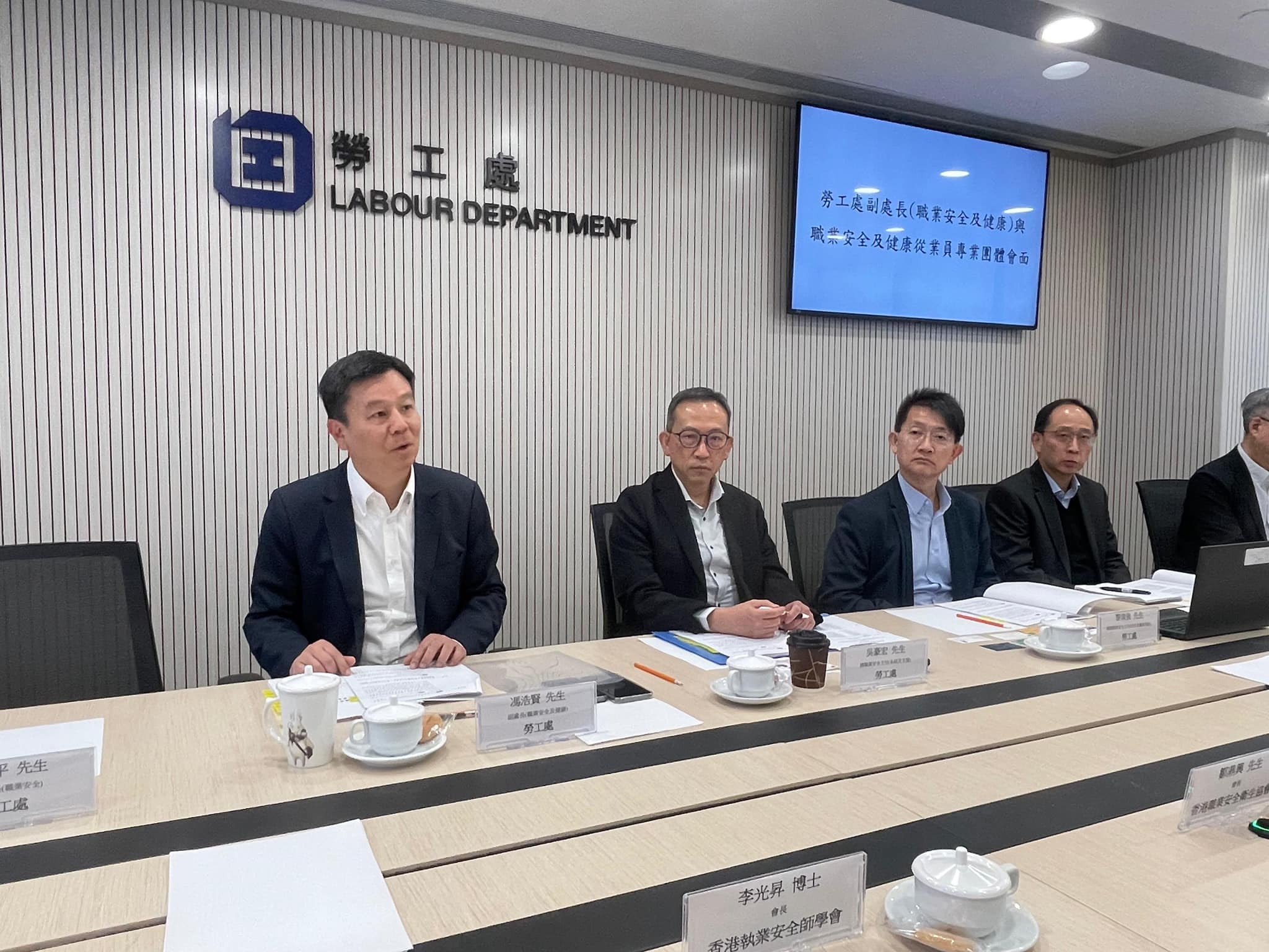 勞工處在會上與有關專業團體就近期發生的多宗致命及嚴重工作意外,特別是大埔宏福苑的五級火災,共同探討防止意外發生的方法。討論聚焦竹棚架及防火安全,亦探討了職安健從業員在專業上可進一步優化的地方、安全主任及安全審核員的註冊制度,以及各項更新中的職安健守則和指引。