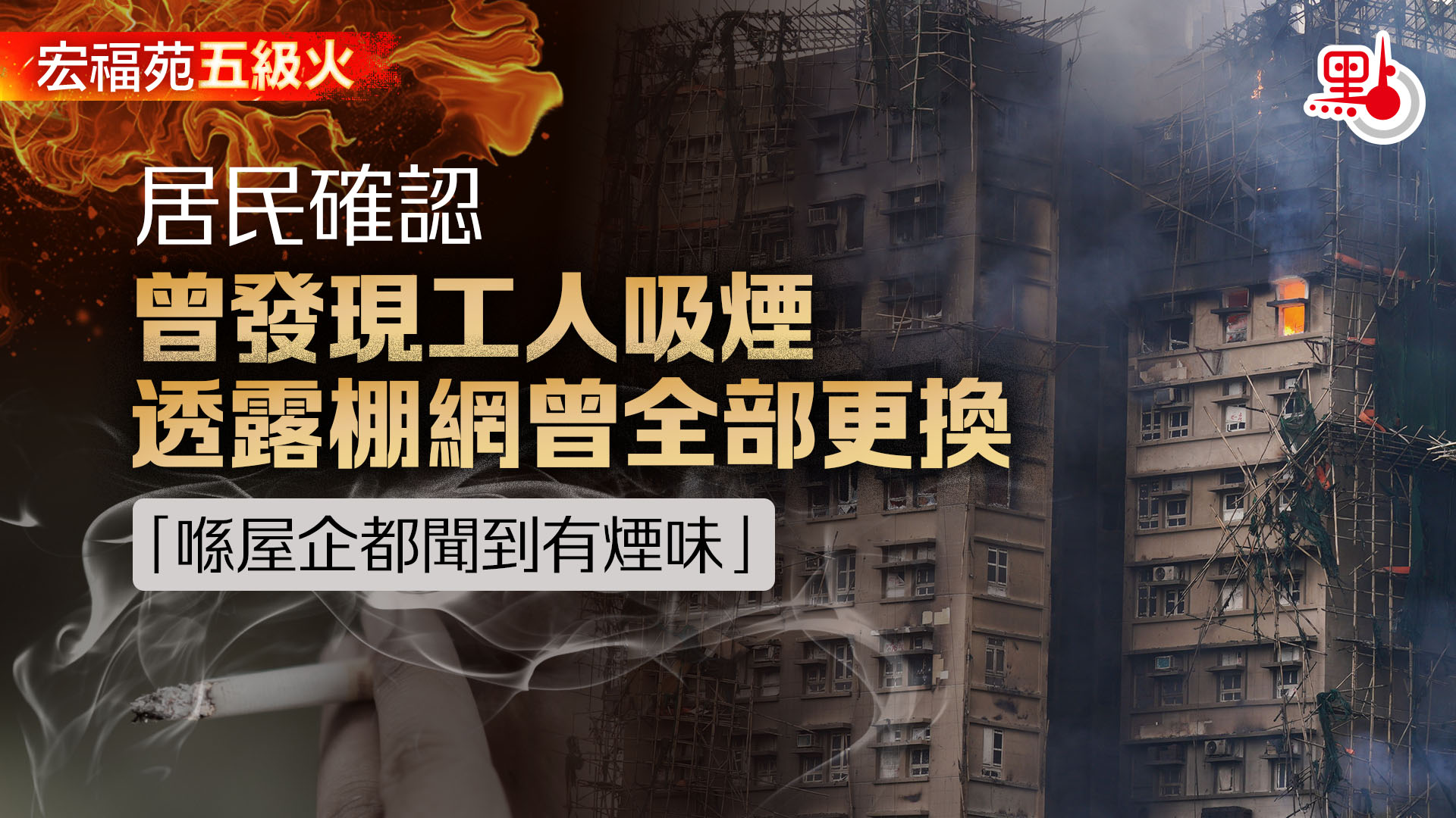 【點新聞報道】大埔宏福苑11月26日發生五級大火,造成嚴重傷亡。網上輿論除了討論發泡膠及棚網,亦關注工人在地盤吸煙帶來的安全隱患。地產建設商會發言人今日(5日)回覆傳媒查詢表示,正陸續收集會員就地盤全面禁煙的意見,如有進一步消息,適時會分享。今日並無會議討論這議題。