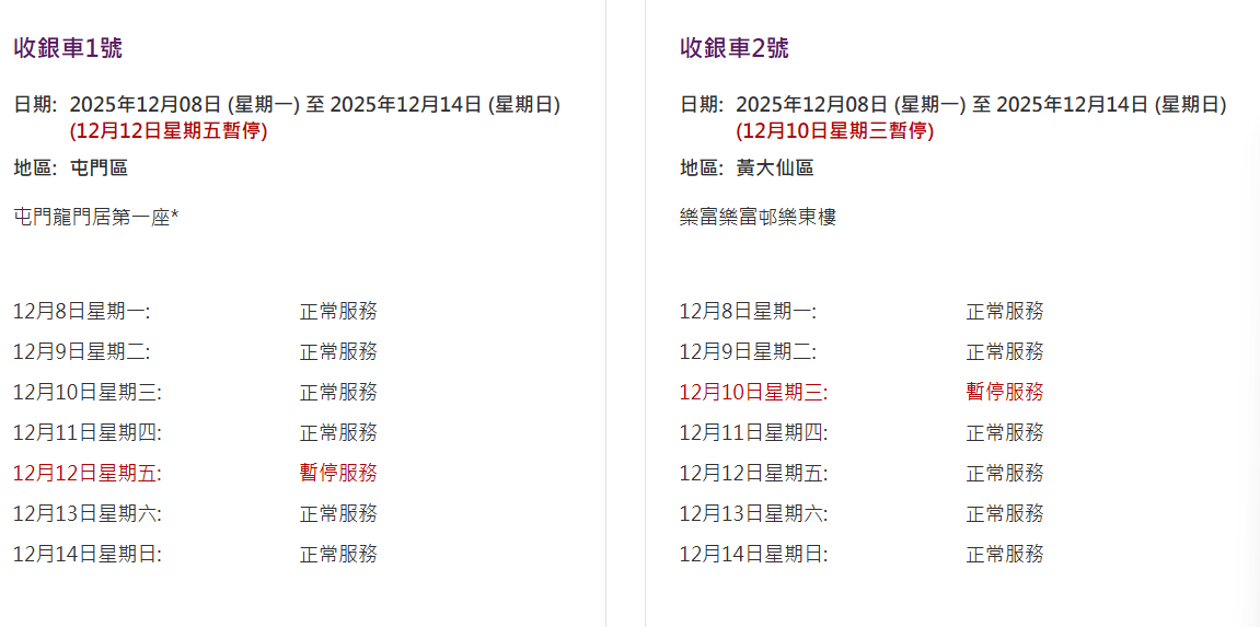 硬幣兌換|金管局公布「收銀車」最新停泊地點日程表