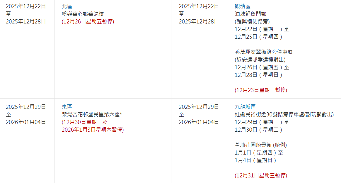 【點新聞報道】香港金融管理局今日(10日)宣布硬幣收集計劃下兩輛「收銀車」最新服務日程表,當中羅列由明年1月5日至3月22日各區服務地點;日程表及其他有關資訊,已載於金管局網頁。金管局會不時檢討計劃成效,並按時更新服務日程表以便預早通知市民。