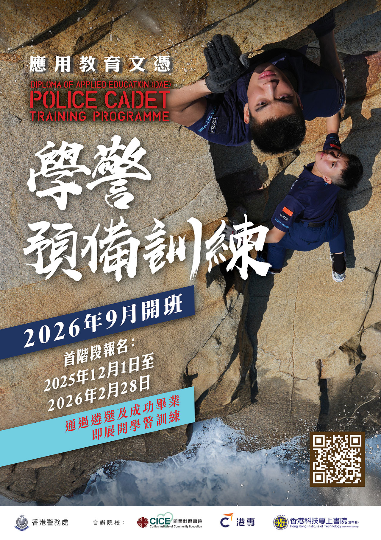 【點新聞報道】警務處致力吸納新血、培育人才,去年與專上院校合作,推出「應用教育文憑-學警預備訓練課程」,協助青年裝備自己;成功修畢課程並取得合格成績、通過體格檢驗和品格審查的學員,可直接開展學警基礎訓練。