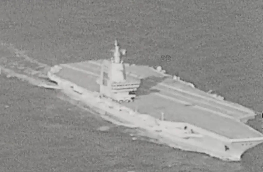 台媒稱,福建艦通過台灣海峽的影像由台軍F-16戰機用偵察吊艙拍攝。