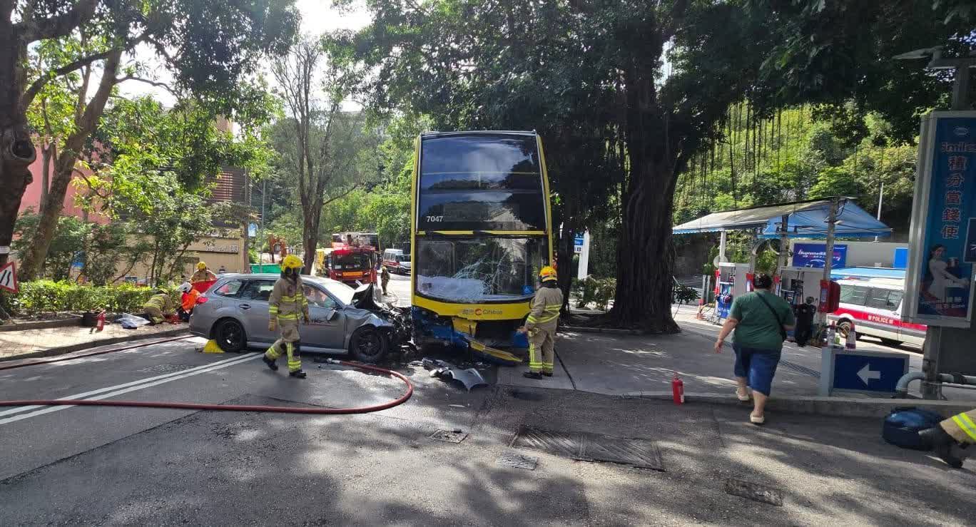 (有片)赤柱村道城巴與私家車相撞 7人受傷送院