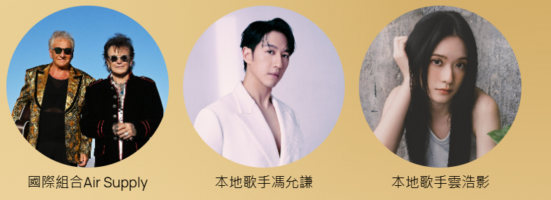 國際殿堂級組合Air Supply將演唱耳熟能詳的抒情懷舊歌曲,本地歌手馮允謙和雲浩影(Cloud)也現場獻唱,同場更有兒童合唱團及香港警察樂隊參與演出。