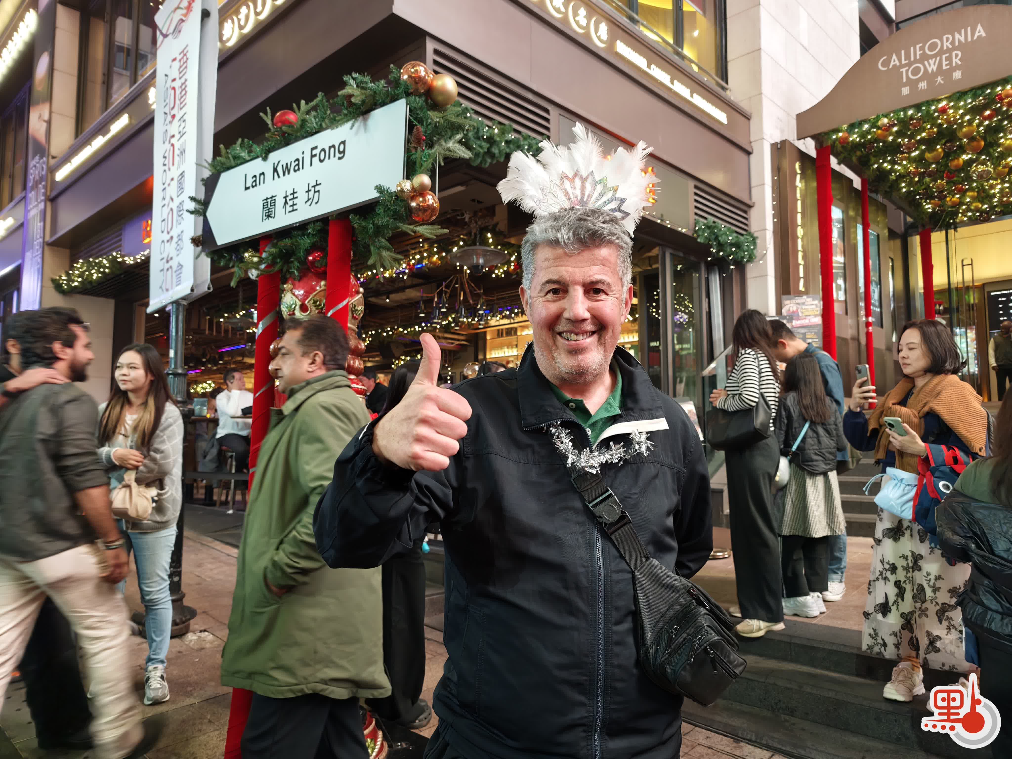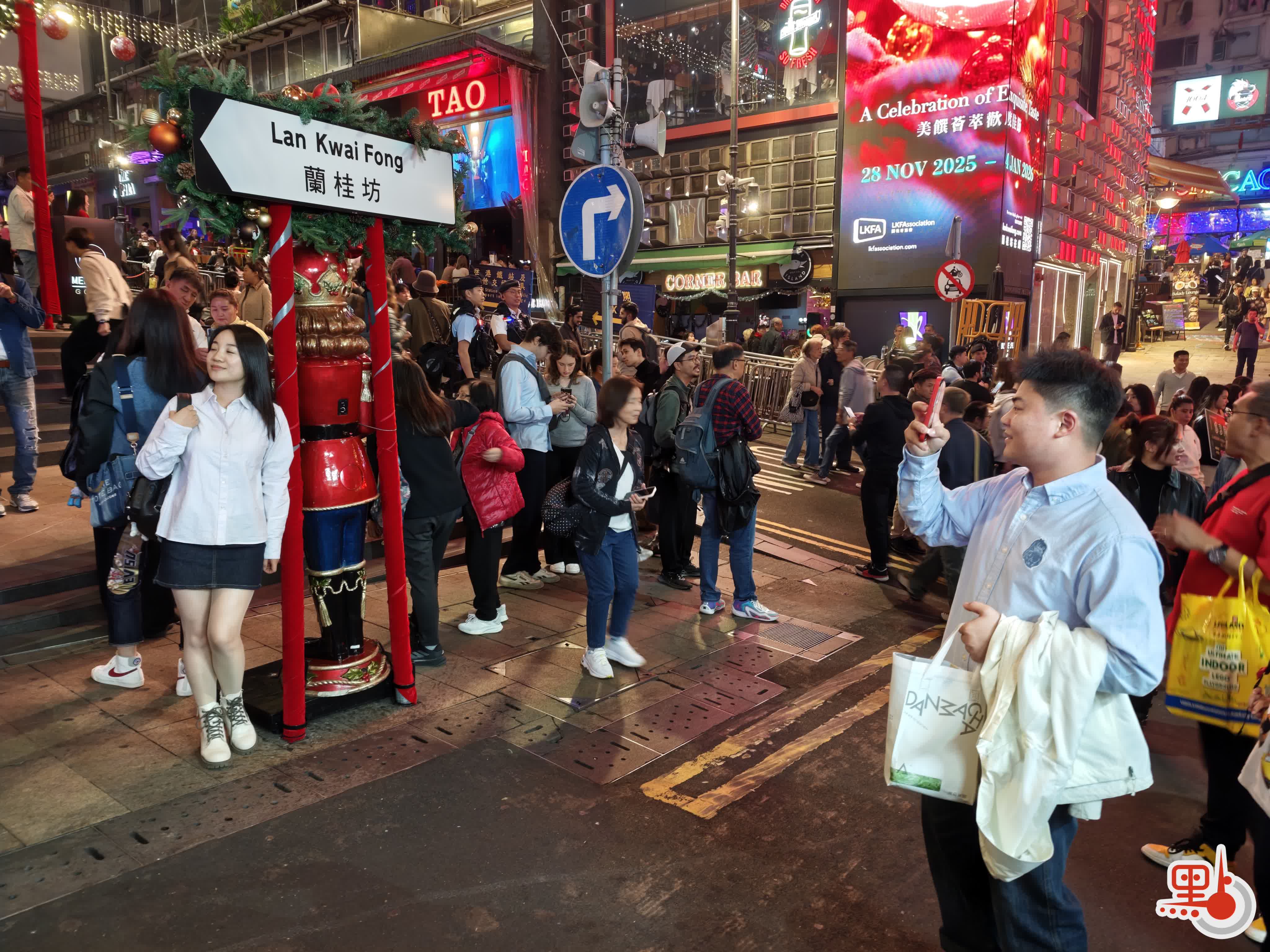豐富的活動亦吸引了大批遊客。來自斯洛文尼亞的Stanko與家人剛結束在內地的旅程,特地選擇在香港度過2025年的最後一天。剛抵達香港的他在放下行李後直奔蘭桂坊,大讚香港熱鬧且充滿活力,街道節慶氣氛極好,對今晚的跨年表演充滿期待。