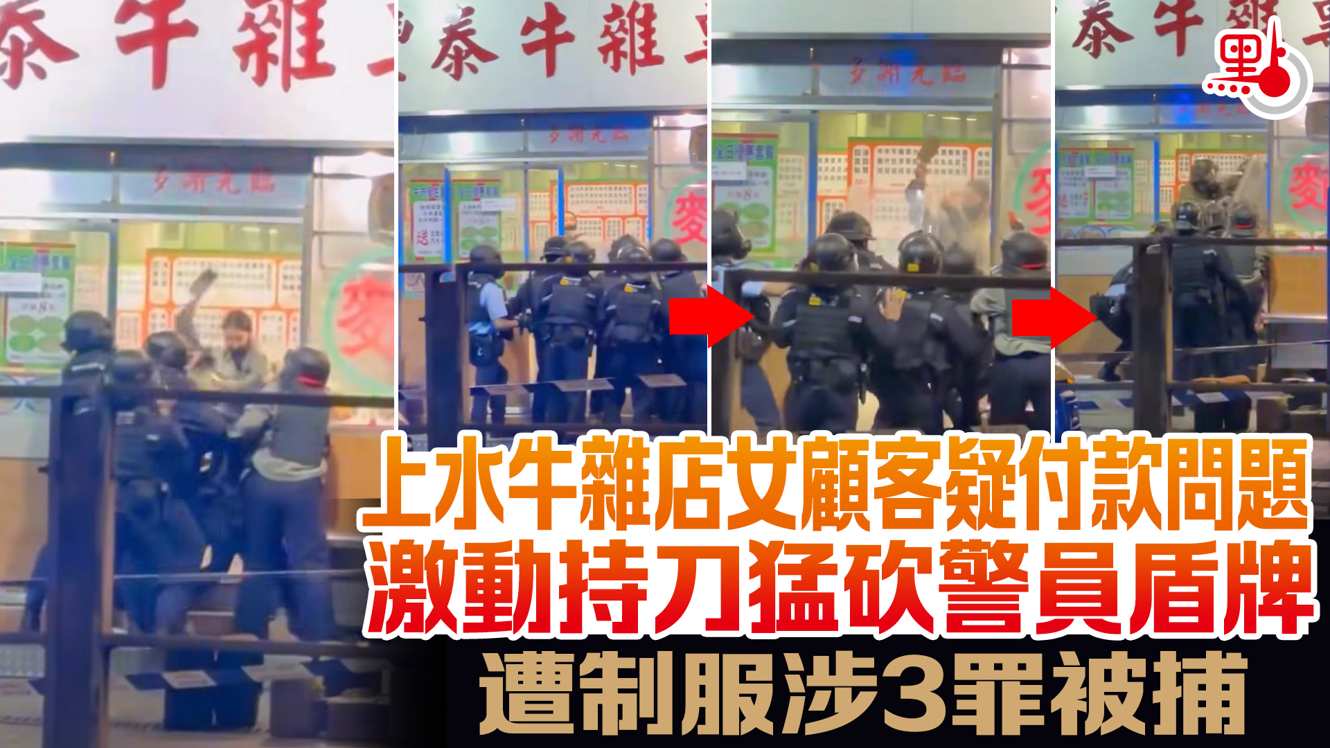 上水牛雜店女顧客疑付款問題 激動持刀猛砍警員盾牌 遭制服涉3罪被捕