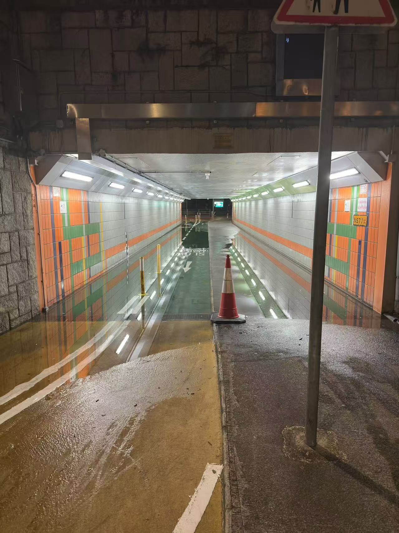 有居於大埔的網民在社交平台發文,指大埔南運路與太和路之間的行人隧道受大潮影響多處積水,提醒市民盡量避免使用上述通道。
