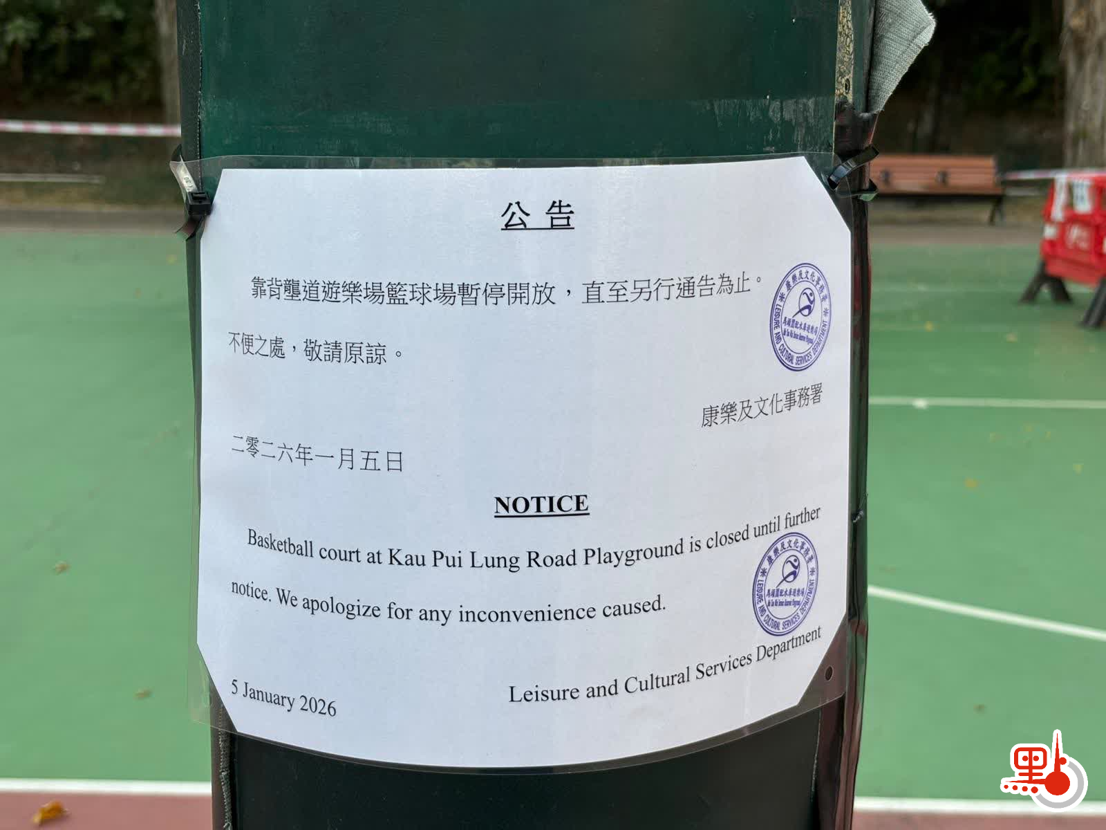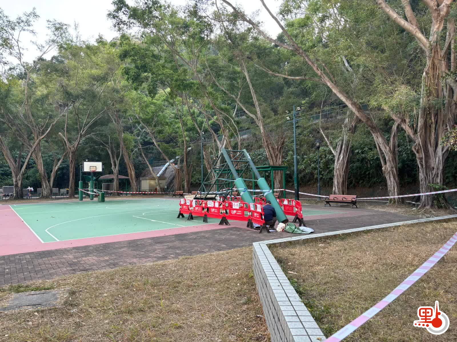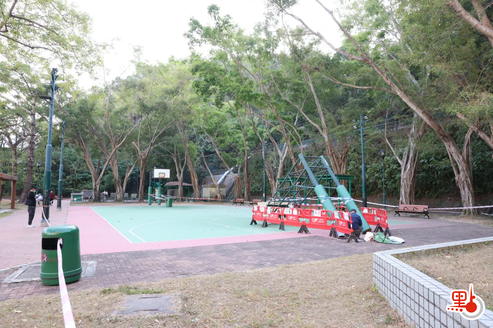 【點新聞報道】土瓜灣靠背壟道遊樂場的籃球場,昨晚(4日)發生籃球架倒塌壓傷人意外,一名青年受傷送院,初步相信是籃球架支柱鏽融老化致塌下。倒塌的籃球架今日(5日)仍未被移走,但與現場連同另一個同類籃球架已被圍封,康文署亦貼出公告指上址球場暫停開放直至另行通告,並有一名疑似工作人員到場檢查。有街坊對事件感到擔心,直言當局「應加強定期檢查及翻新。」
