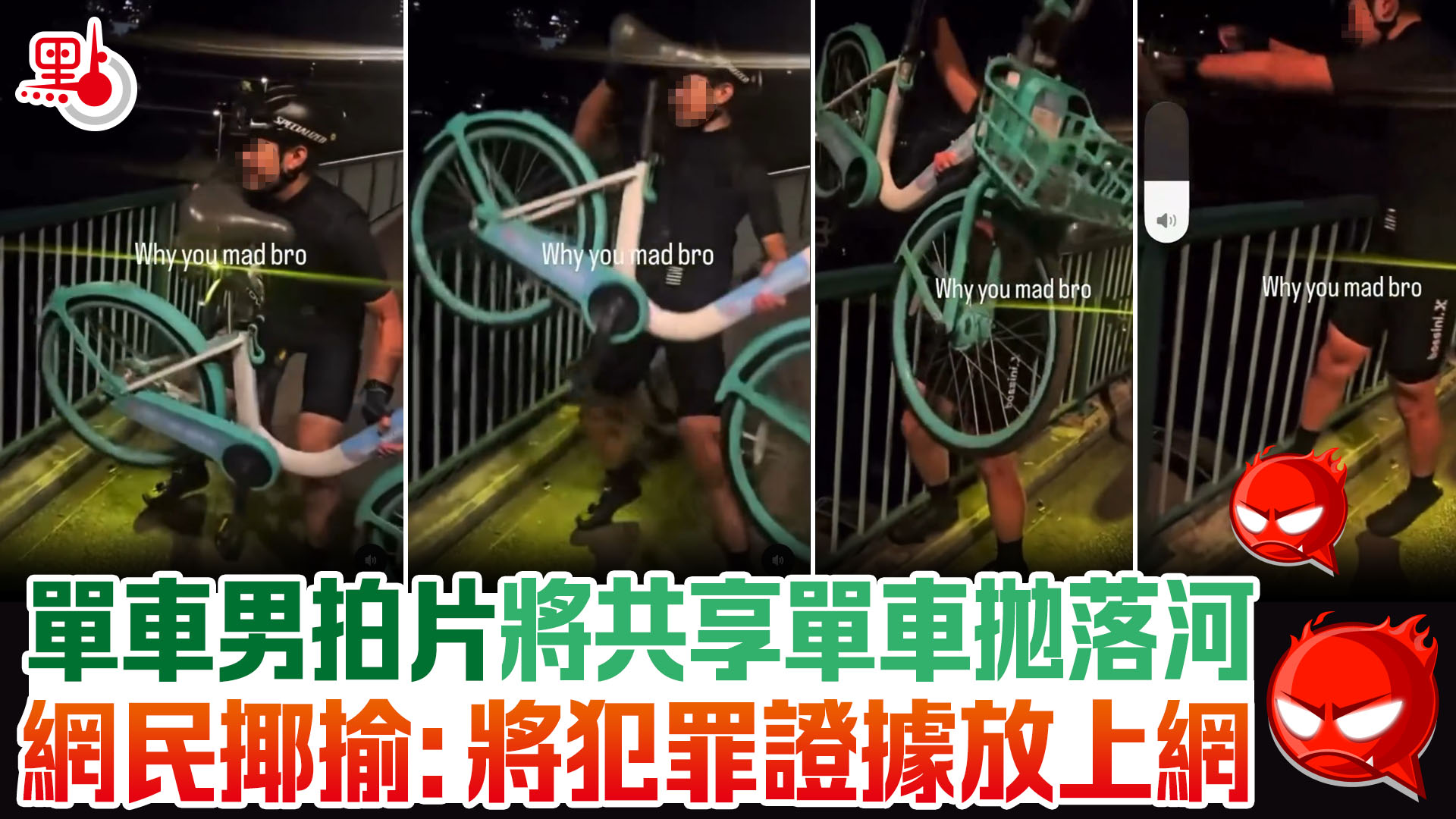 有網民在社交平台threads上載發文,標註本地共享單車營辦商LocoBike,寫道「乜X嘢呀?而家啲人咁冇公德心嘅。喺天橋抌logo」。從其上載的影片可見,一名戴頭盔、身穿黑色單車服的男子,將一輛共享單車舉高,然後越過欄杆拋入河道,現場傳出其同行的單車友一陣嬉笑聲。