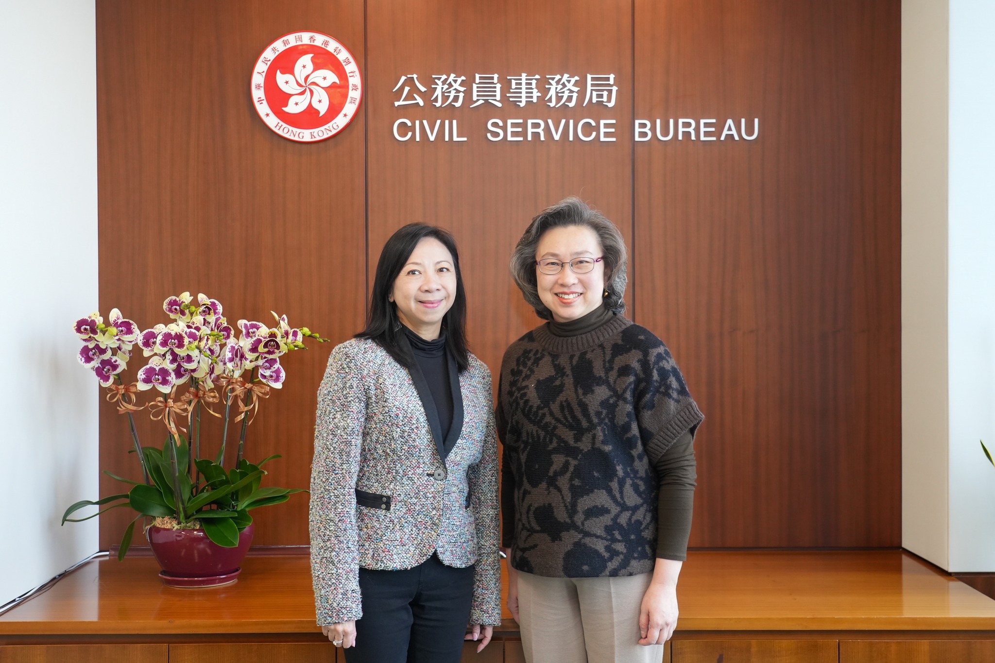 她還說,本屆政府致力推動政府治理體系改革,強化管治效能。在未來一段日子,她期望並深信會與Shirley合作無間,持續完善公務員管理制度,加強公務員培訓和交流等工作,推動公務員團隊繼續以專業高效的精神,鞏固以民為本的服務文化,積極為市民做實事,為香港長期繁榮穩定貢獻重要力量。