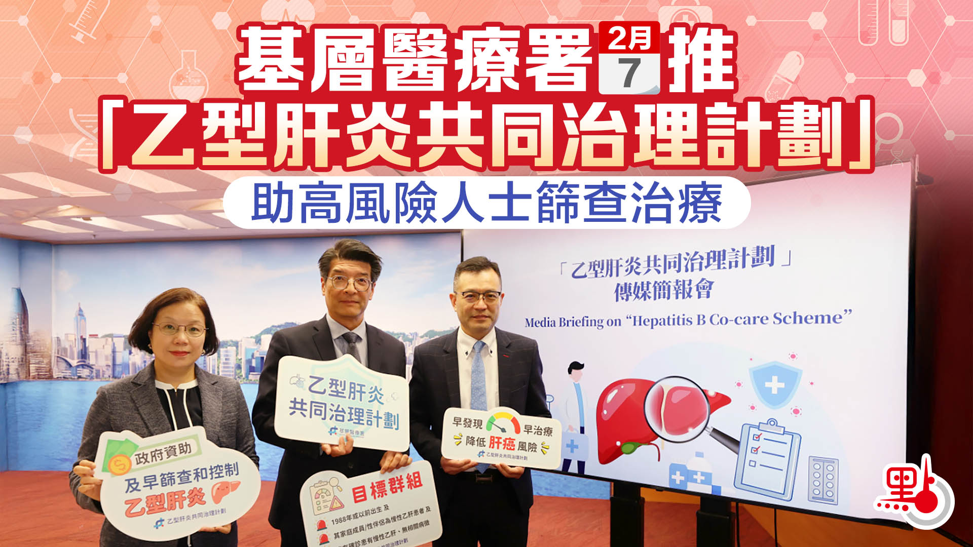 【點新聞報道】醫衞局轄下基層醫療署今日(26日)宣布,將於2月7日推出「乙型肝炎共同治理計劃」,為高風險市民提供乙型肝炎篩查及治療服務,以減低肝硬化及肝癌風險。「乙型肝炎共同治理計劃」是行政長官在2025年《施政報告》中提出的其中一項重點基層醫療措施。