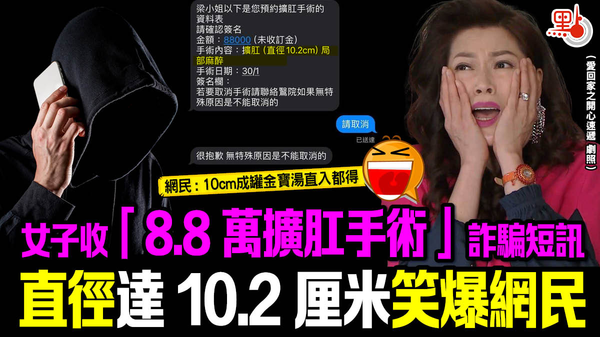 女子收「8.8萬擴肛手術」詐騙短訊 直徑達10.2厘米笑爆網民