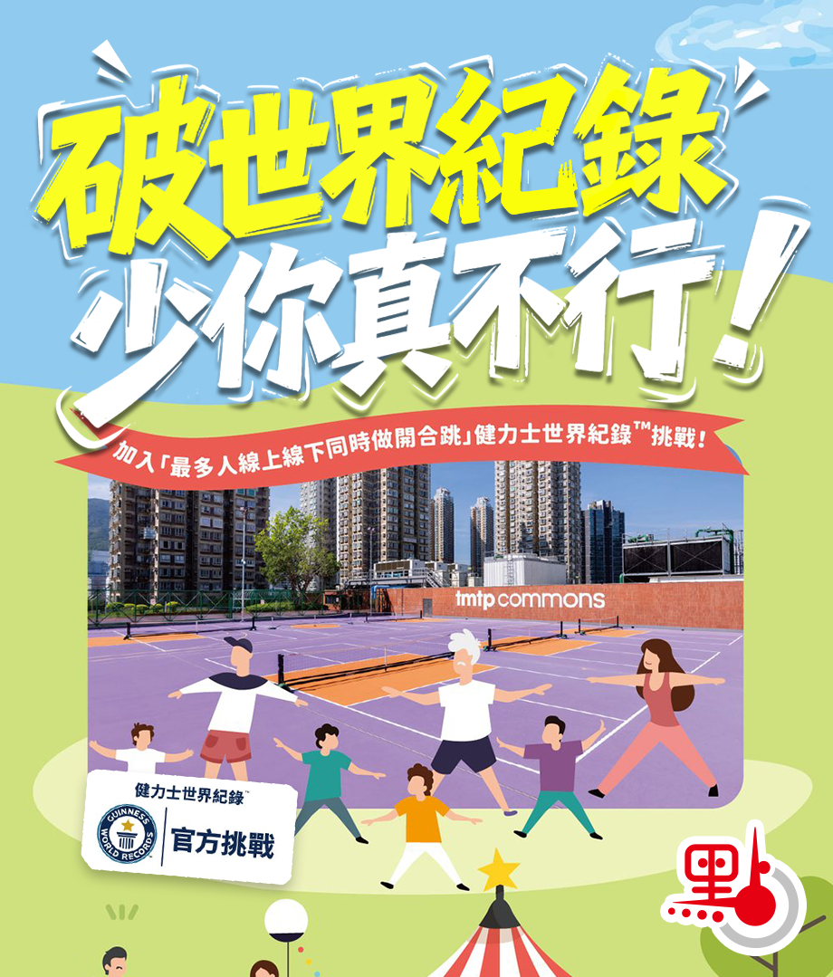 這不是一場孤軍奮戰的挑戰,而是屬於每一位參與者的歷史時刻!線上線下的每一次跳躍,都是打破紀錄的關鍵一步。缺了你,這場千人共創的健力士世界紀錄就不完整!抓緊報名,用最簡單的開合跳,一起把名字刻進屬於香港的榮耀裏!