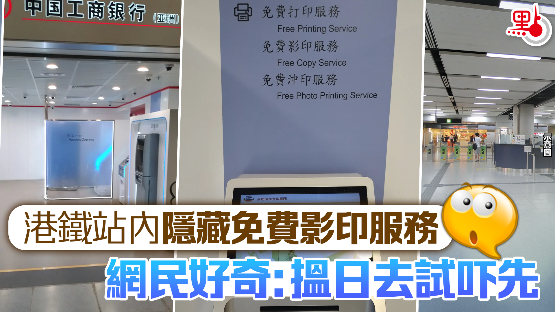 該網民於社交平台發文問「見到喺港鐵站有得免費Print嘢,有冇人試過?」,只見其上傳的相片顯示,該設施標明可提供免費打印、影印及沖印服務,位於中國工商銀行(亞洲)。有網民留言回覆指,該服務其實是來自中國工商銀行(亞洲)的遠程櫃員機(VTM),同時附設免費打印服務。