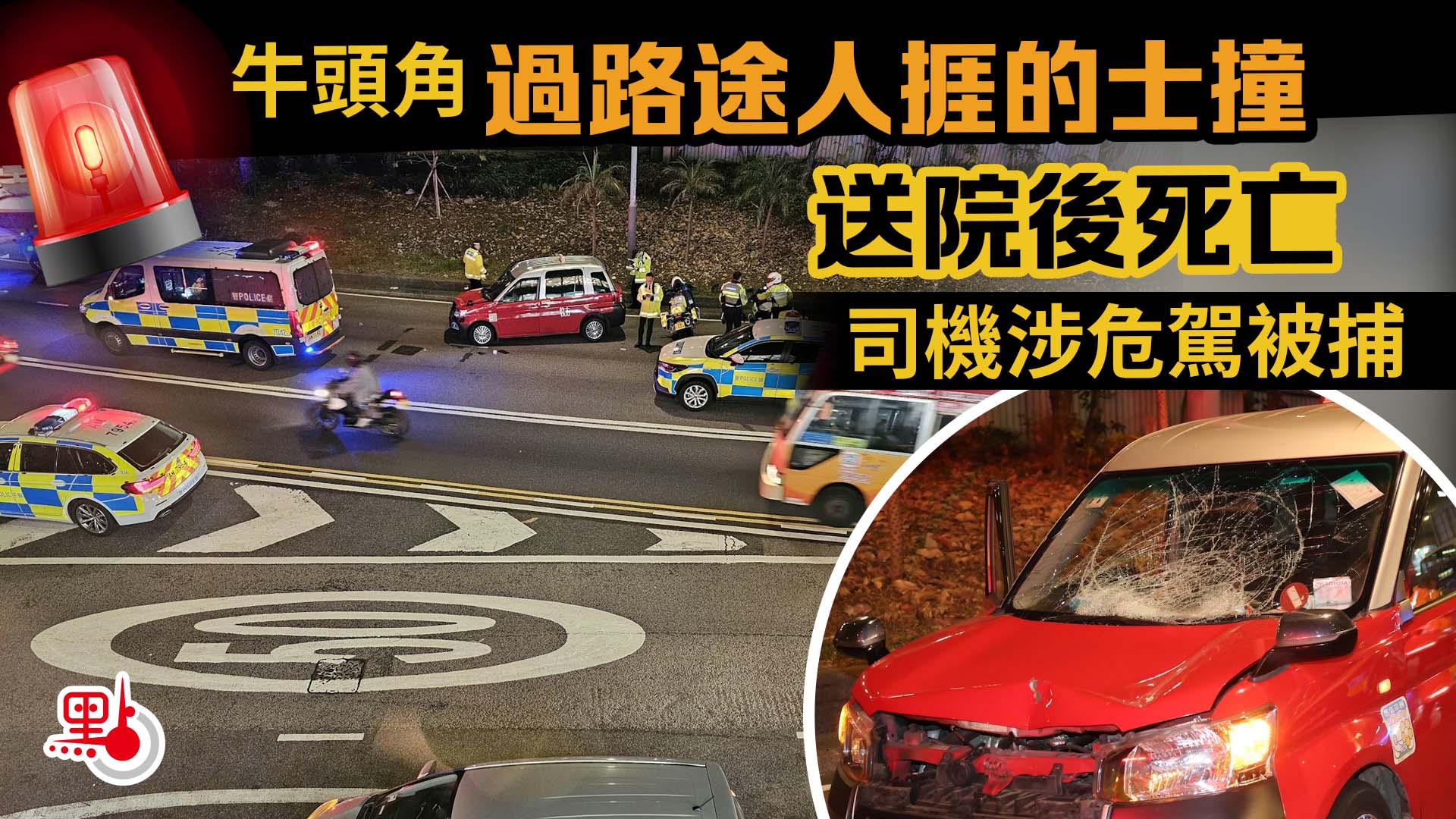 昨晚約9時12分,一名46歲男子駕駛一輛的士沿觀塘道往觀塘方向行駛,當駛至近牛頭角道時,據報撞倒一名正在過路的80歲男子。該名男子頭部及四肢嚴重受傷,昏迷被送往伊利沙伯醫院治理,於昨晚10時37分被證實死亡。該名司機涉嫌危險駕駛引致他人死亡被捕,他現正被扣留調查。