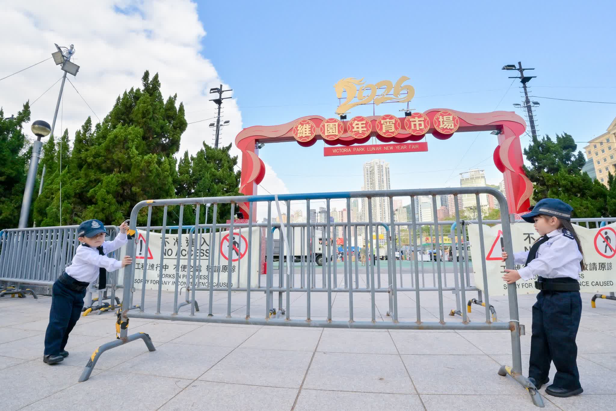 (有片)年初二小萌警向市民拜年 警隊「精嬰」維園年宵當值
