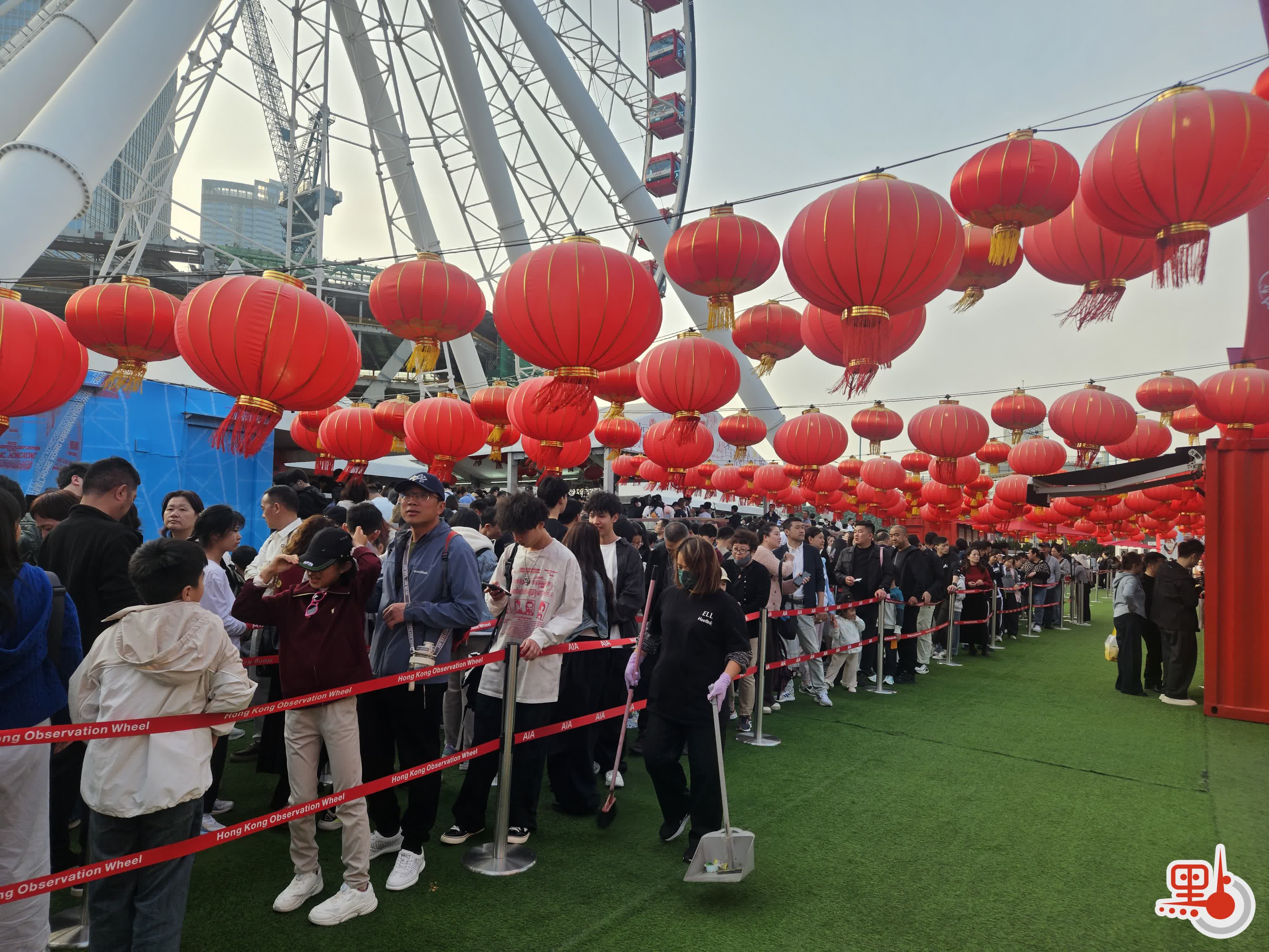 【點新聞報道】今日(19日)是大年初三,許多市民紛紛外出歡度新年。下午4時許,點新聞記者在中環摩天輪看到,現場排起長龍,輪候隊伍長得望不到盡頭。