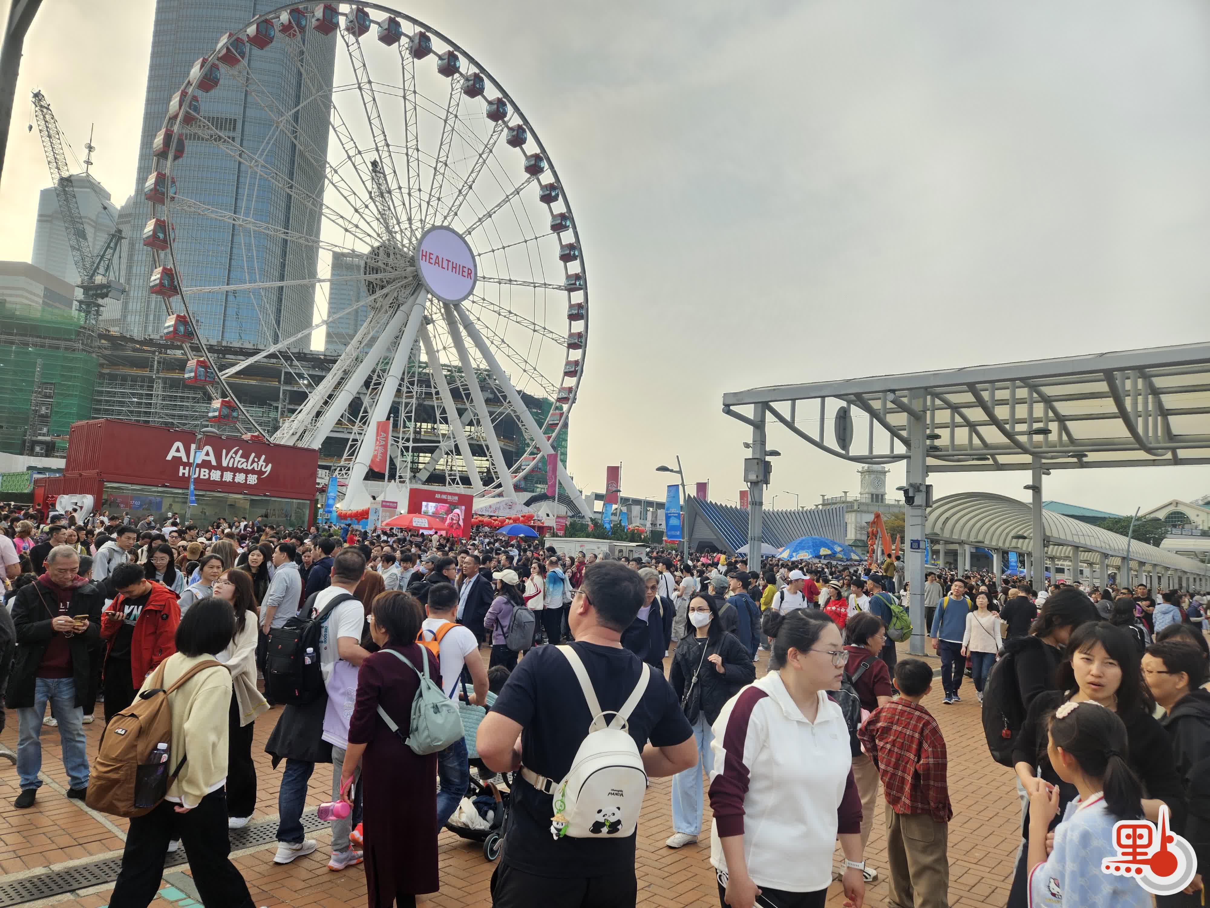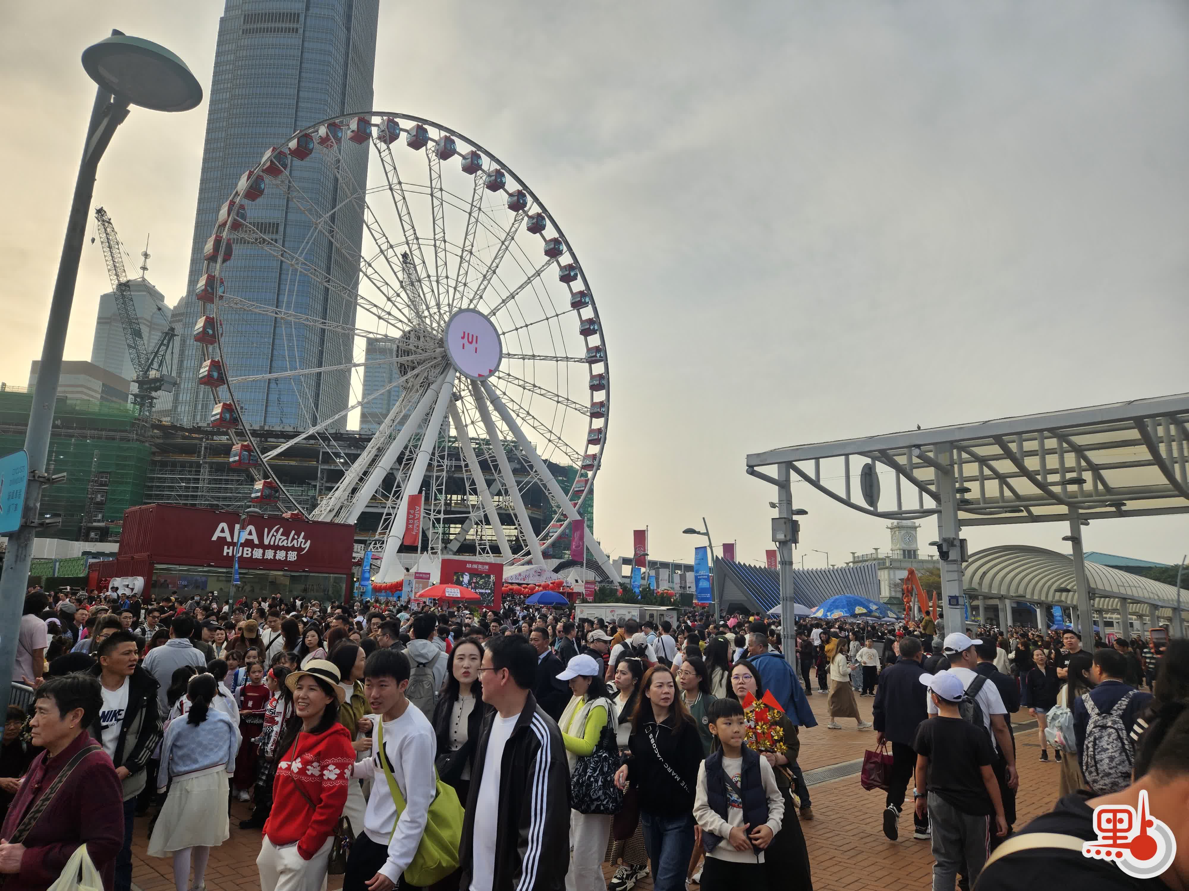 (有片)中環摩天輪人頭湧湧 輪候需時約150分鐘