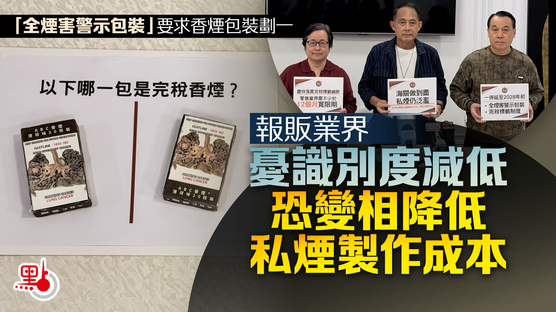 【點新聞報道】政府原計劃將於2027年第二季同步推行「全煙害警示包裝」與「完稅標籤制度」。報販業界今日(20日)舉行記者會,建議將兩項措施延後至最早2028年第一季全面同步落實,同時反對現階段增加煙草稅。