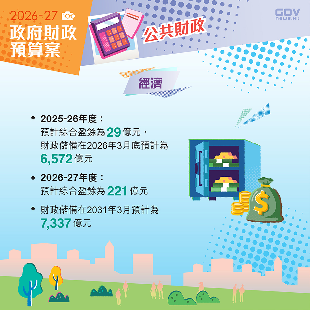【2026/27年度財政預算】2026/27年度政府整體開支為8,434億元,總收入預計為7,652億元。