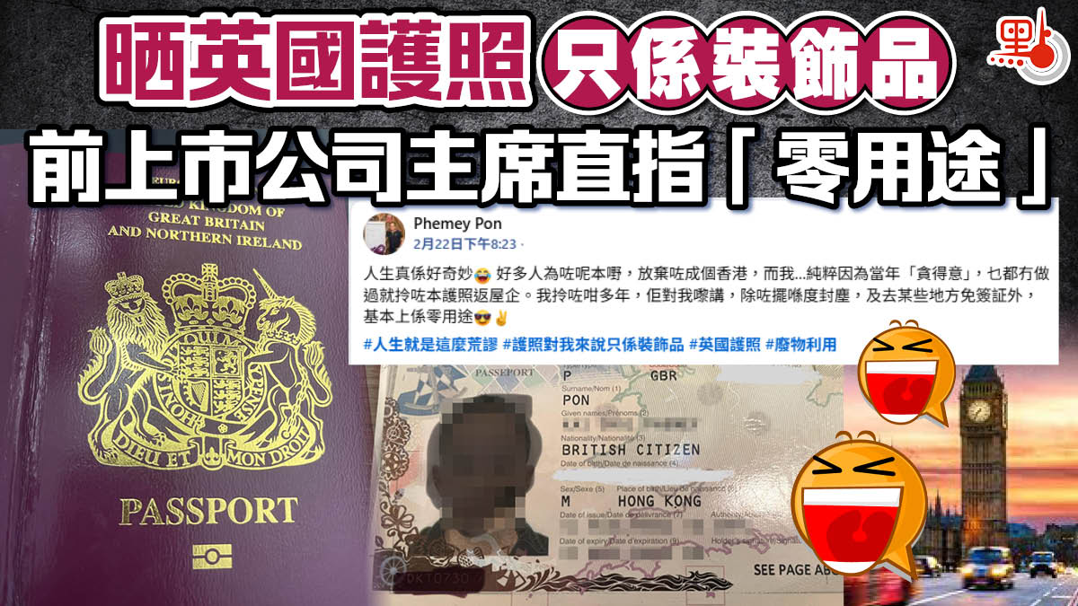 晒英國護照「只係裝飾品」 前上市公司主席直指「零用途」