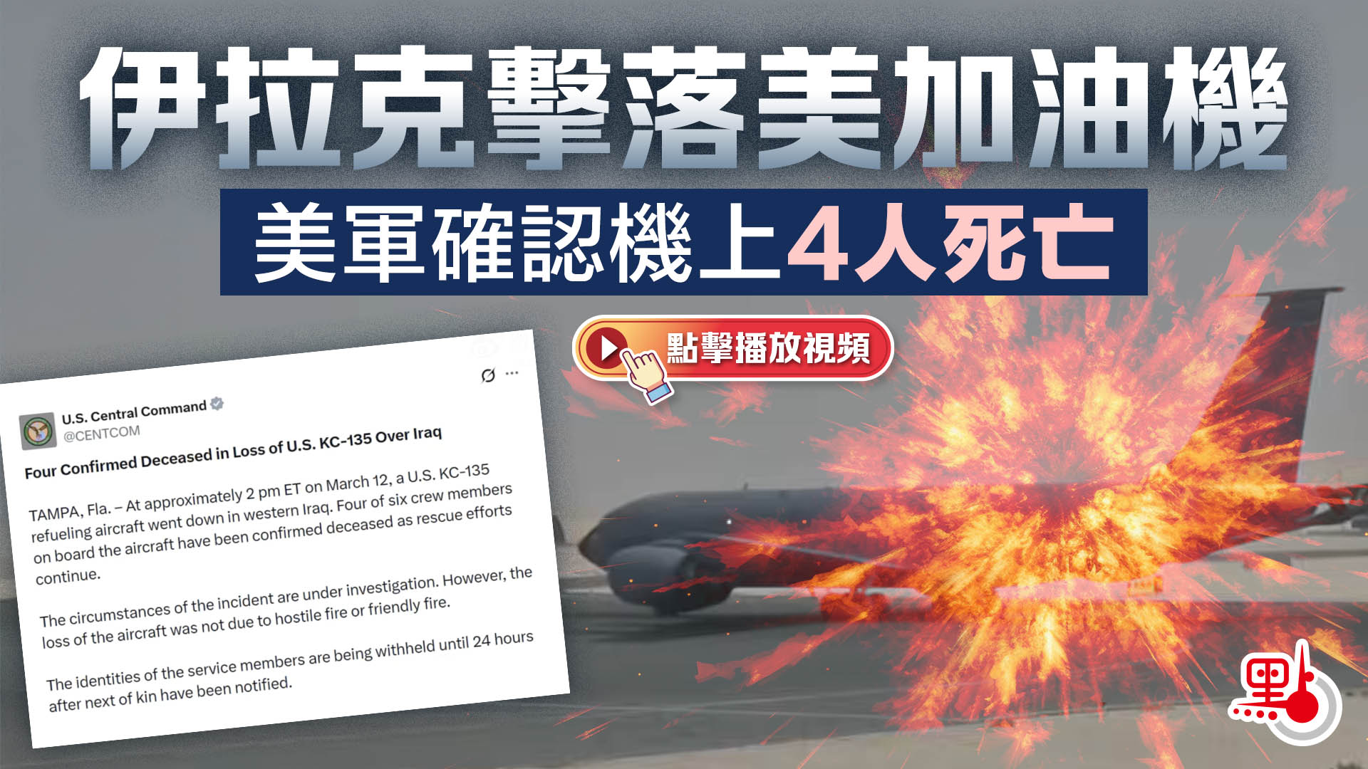 【點新聞報道】據CCTV國際時訊報道,美軍中央司令部今日(13日)發布消息稱,在伊拉克墜毀的加油機上確認有4人死亡,對另外2名機組人員的搜尋工作仍在繼續。