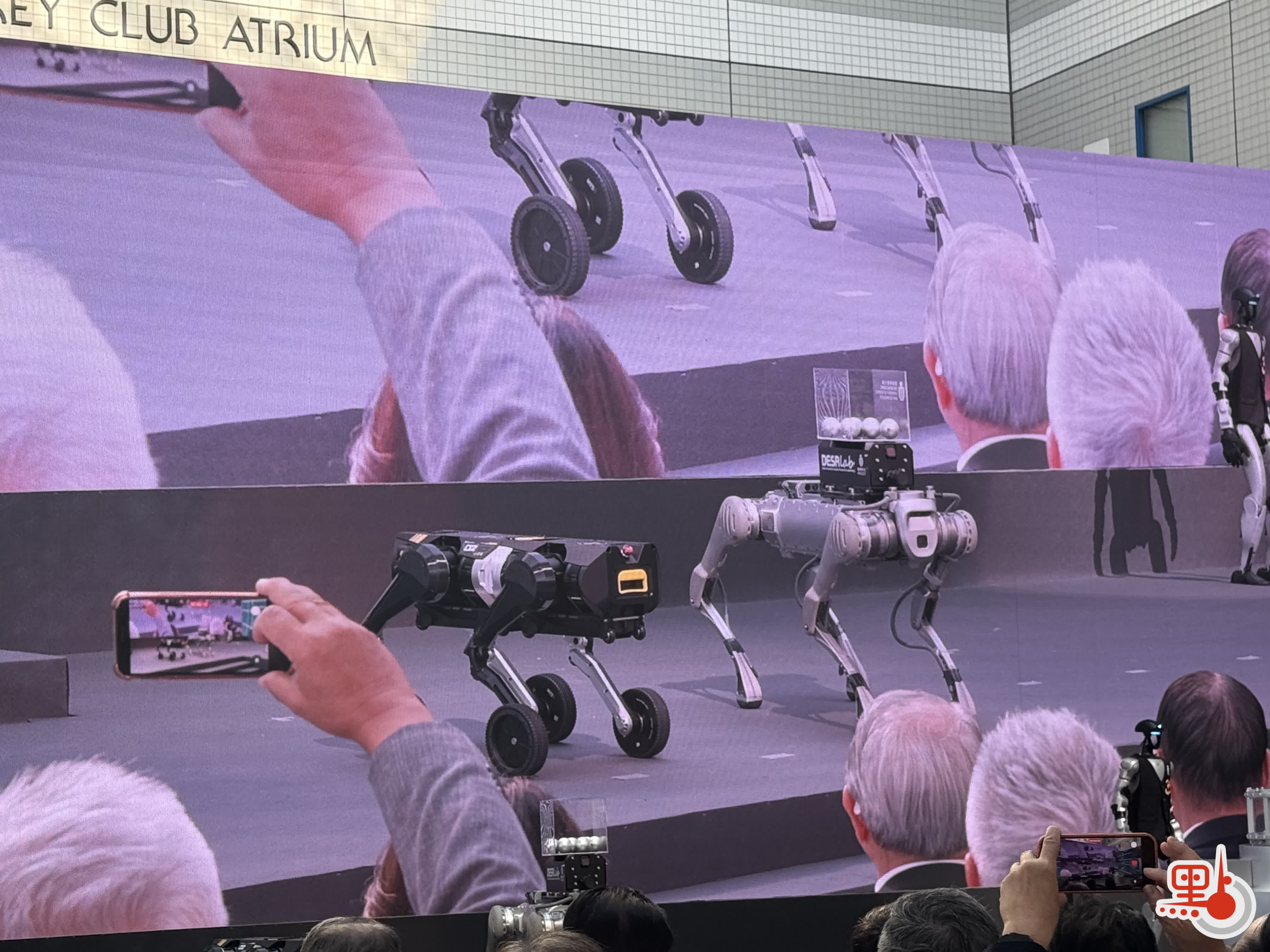 啟動儀式另有一大亮點,就是為主禮嘉賓呈上啟動「奇跡球」的任務落在了兩隻機械狗身上,這兩款機械狗分別由科大初創企業本未科技、土木及環境工程學系,以及鄭家純機器人研究院共同研發,這些四足機械助手原為應對複雜地形及高風險工業檢測而研發。