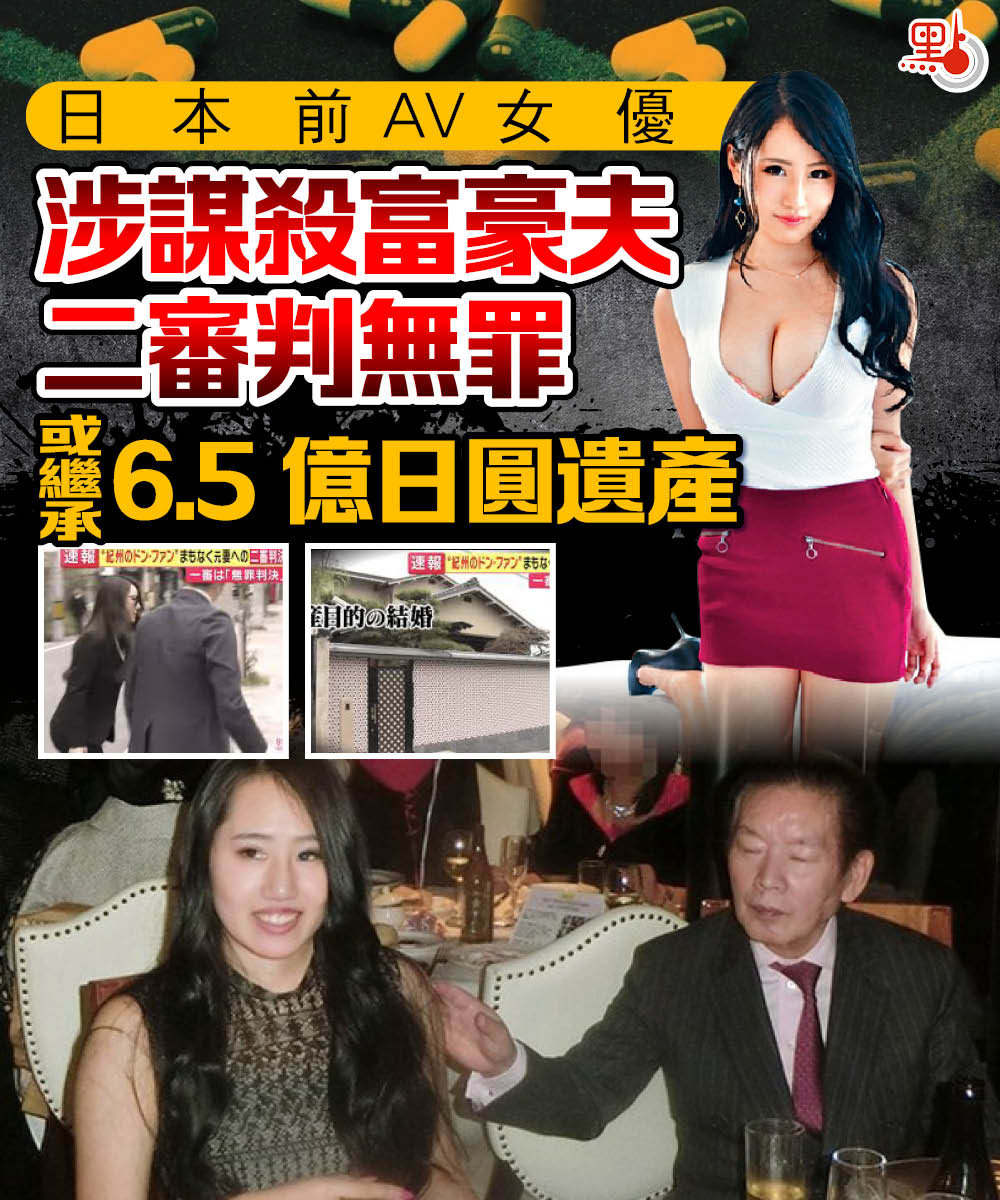 日本前AV女優涉謀殺富豪夫 二審判無罪 或繼承6.5億日圓遺產
