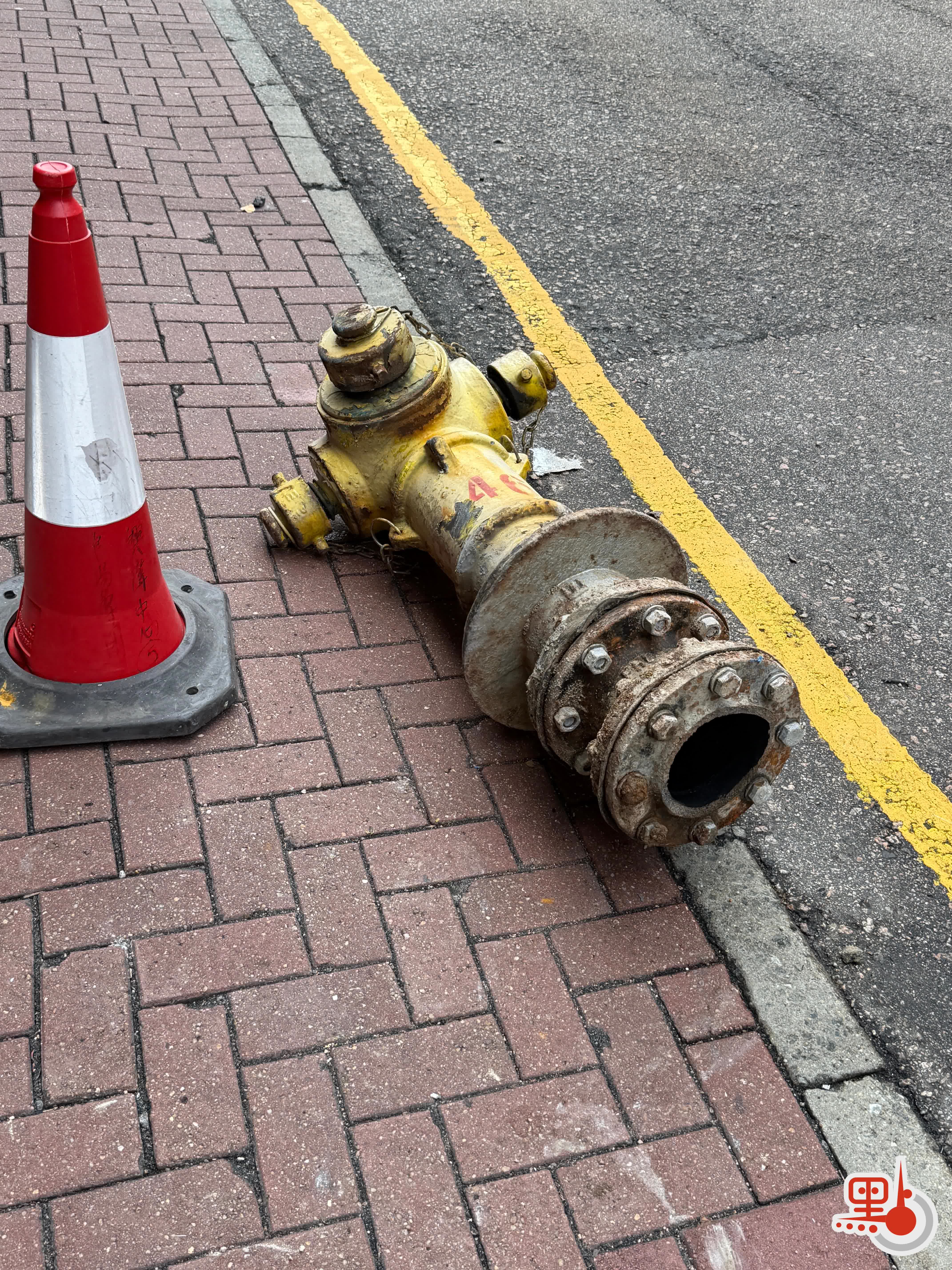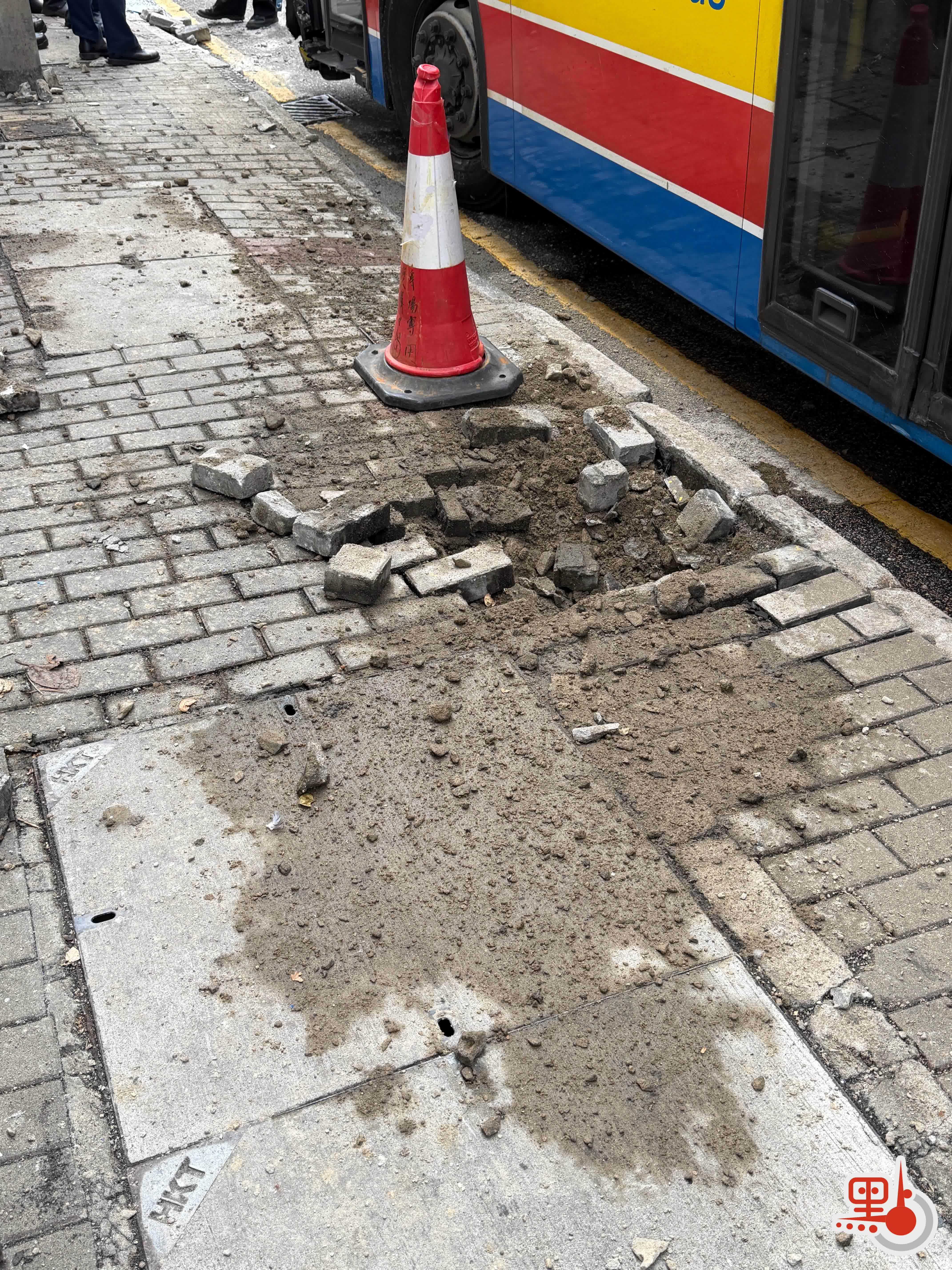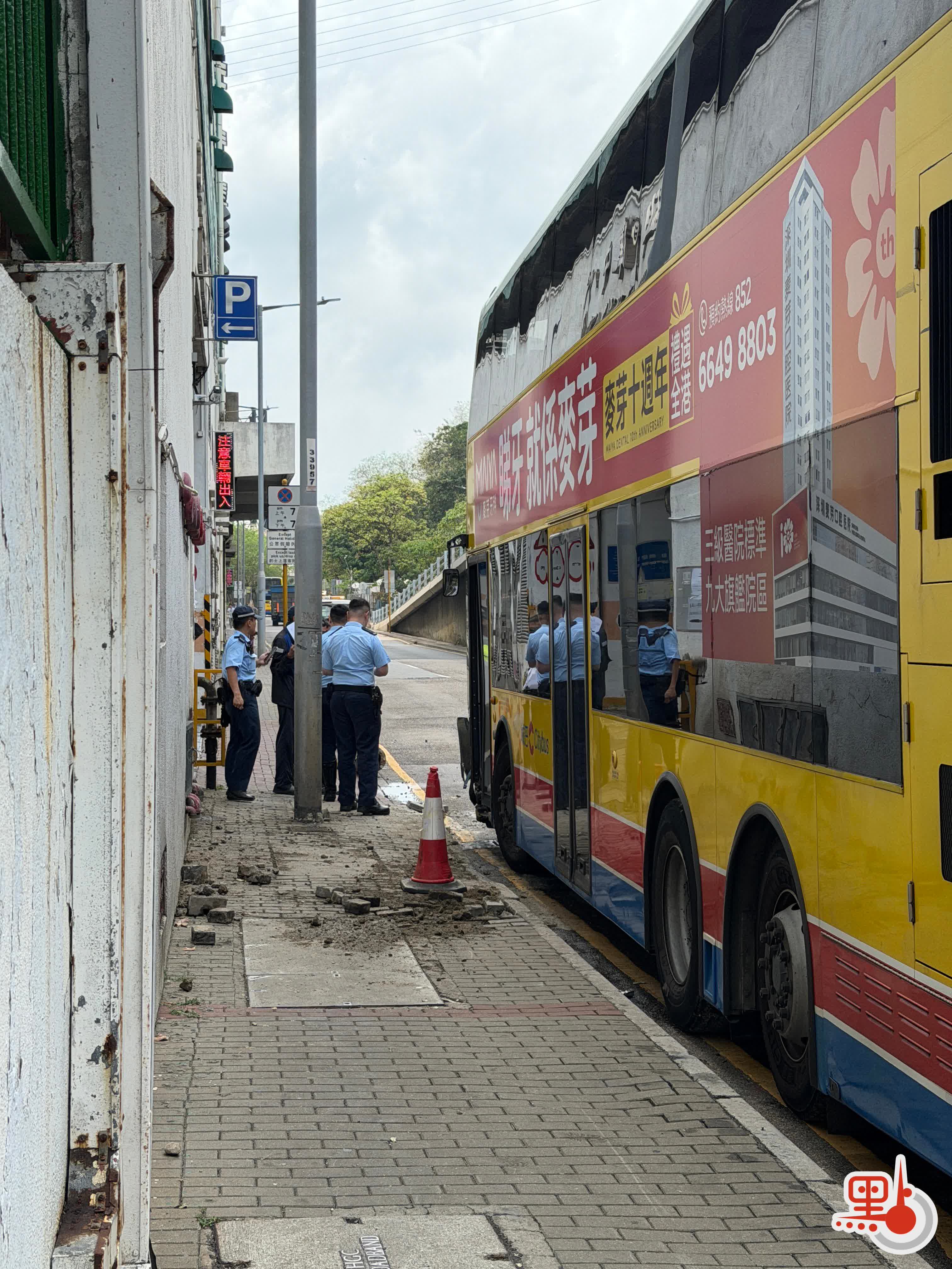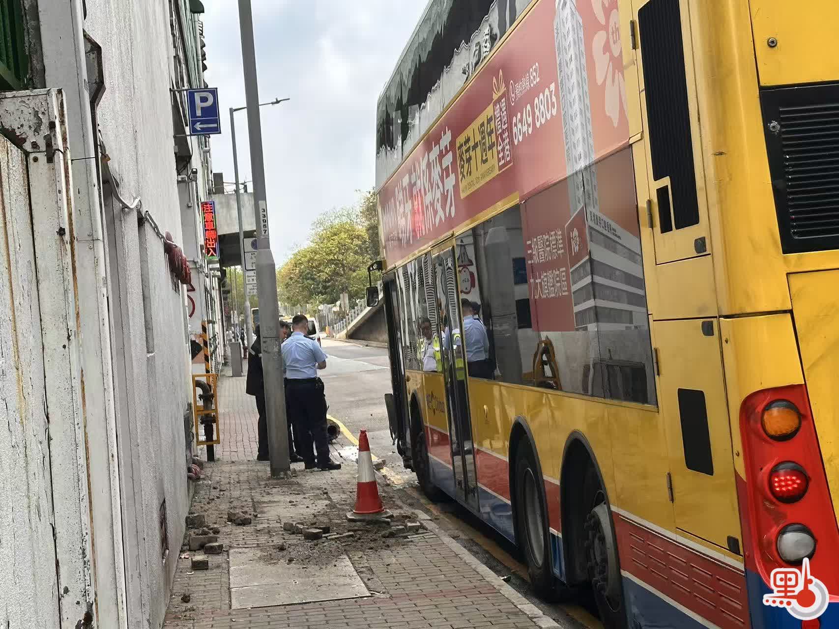(有片)田灣城巴撞飛消防栓裝置 碎石飛濺地面留下大坑