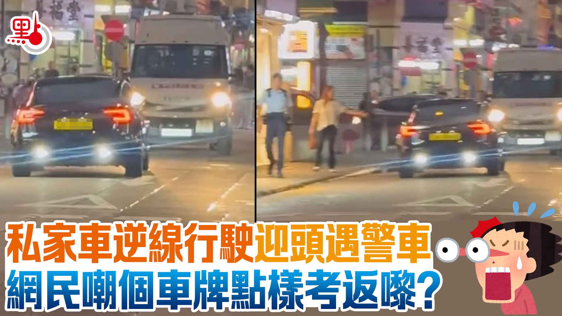 私家車逆線行駛迎頭遇警車 網民嘲個車牌點樣考返嚟㗎?