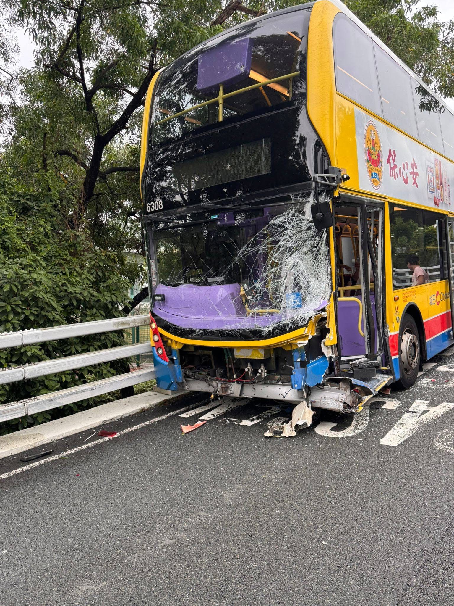 據網絡圖片可見,巴士車頭撞至粉碎,擋風玻璃碎裂,車頭與門框嚴重擠壓變形。私家車則疑被撞至「打白鴿轉」,以逆線方向停在路中。巴士乘客被全數疏導至路中等待救援。
