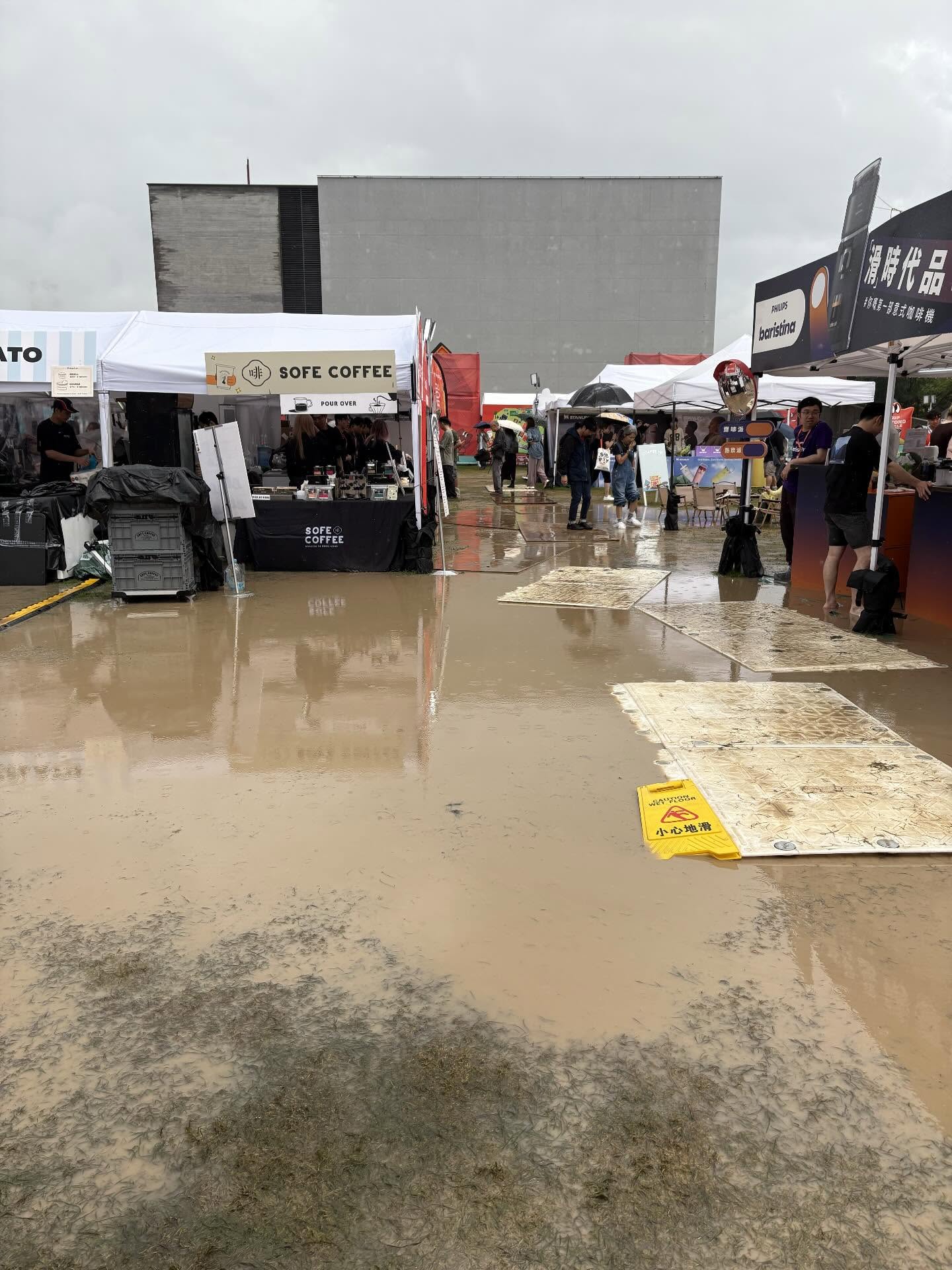 (有片)西九咖啡節遇黃雨變「水上世界」 主辦方:今日入場者明免費重返