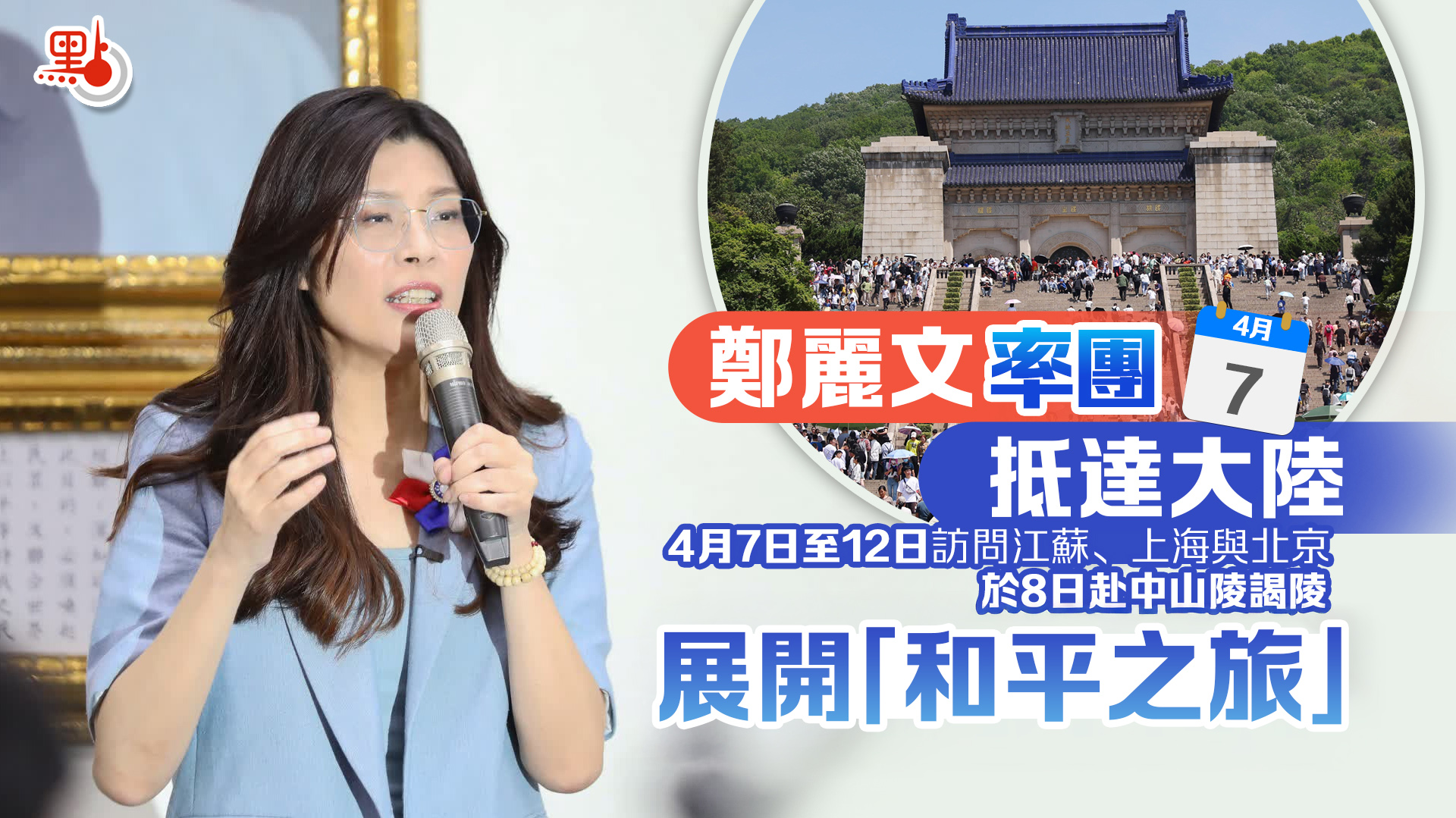 鄭麗文一行7日由台北松山機場啟程,於當日下午飛抵上海,隨即前往南京,並於8日赴中山陵謁陵,再返回上海參訪與出席活動,預計在9日下午轉往北京訪問。