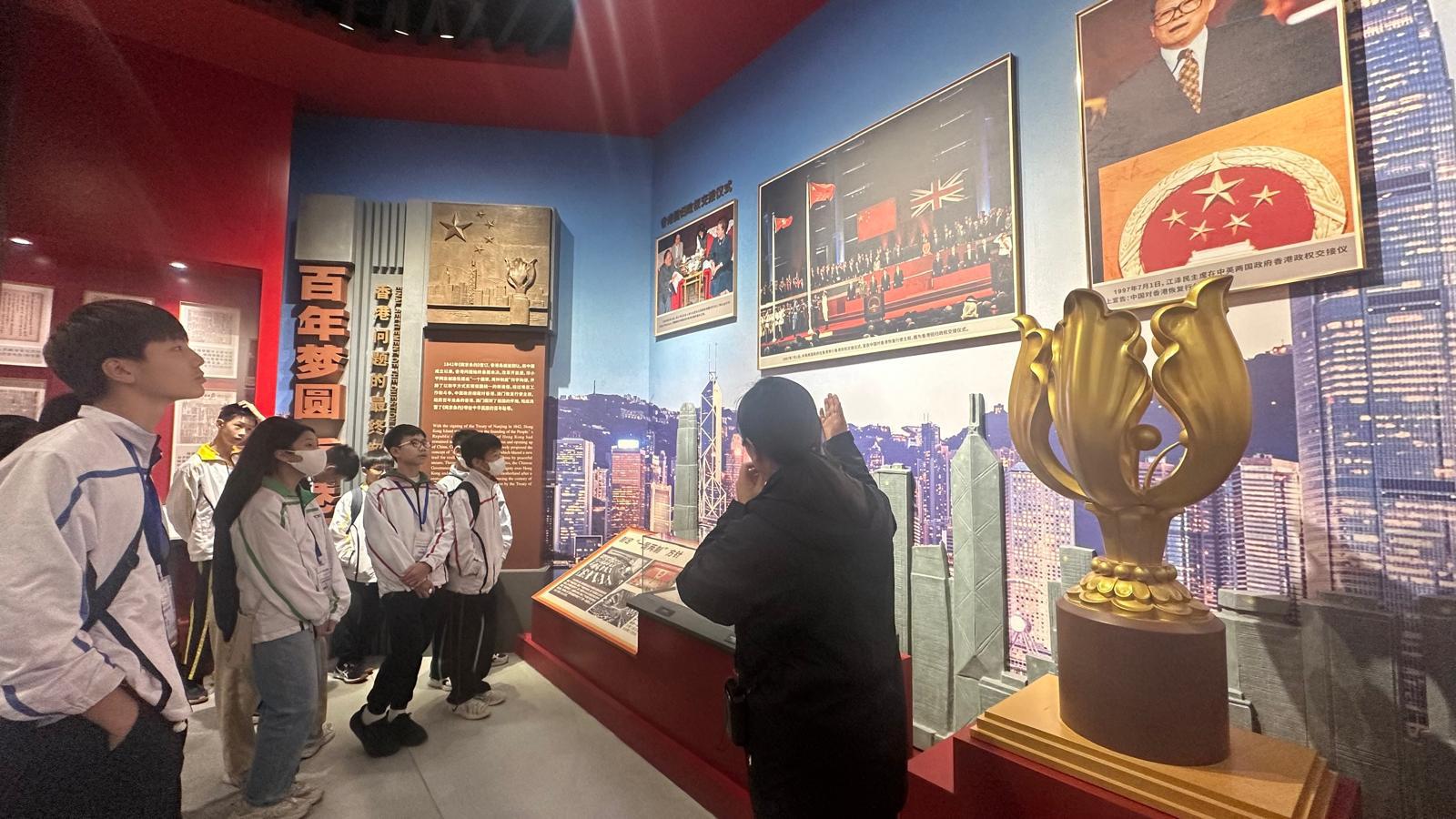 行程首天學生一早於學校集合,下午即已前往南京靜海寺參觀。這裏承載着《南京條約》這不平等條約簽訂的歷史記憶,學生了解鴉片戰爭的背景與影響。過去在課本上閱讀的史實,如今化為眼前實物,震撼感十足。站在靜海寺,學生更能真正感受到國家曾經的苦難與奮鬥。據導賞所言,靜海寺展示的《南京條約》複製本是世界上惟一完整展示條約全文的地方,就連現在收藏正本的大英博物館及台北故宮其實都鮮有展出《南京條約》,就算展出也只是局部展示,未曾全本展出。學生更在警世鐘前體會「前事不忘,後事之師」的意義。