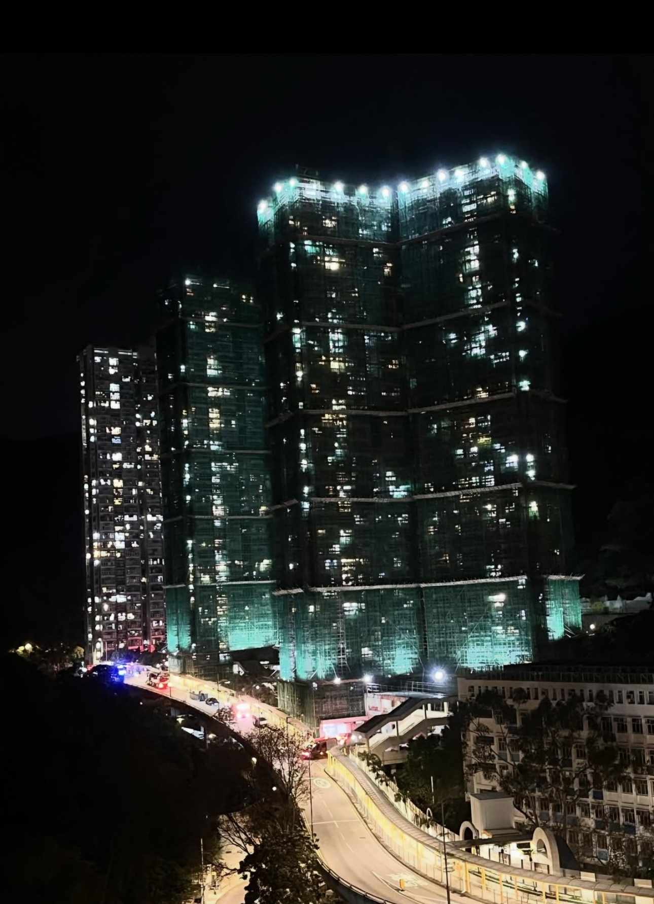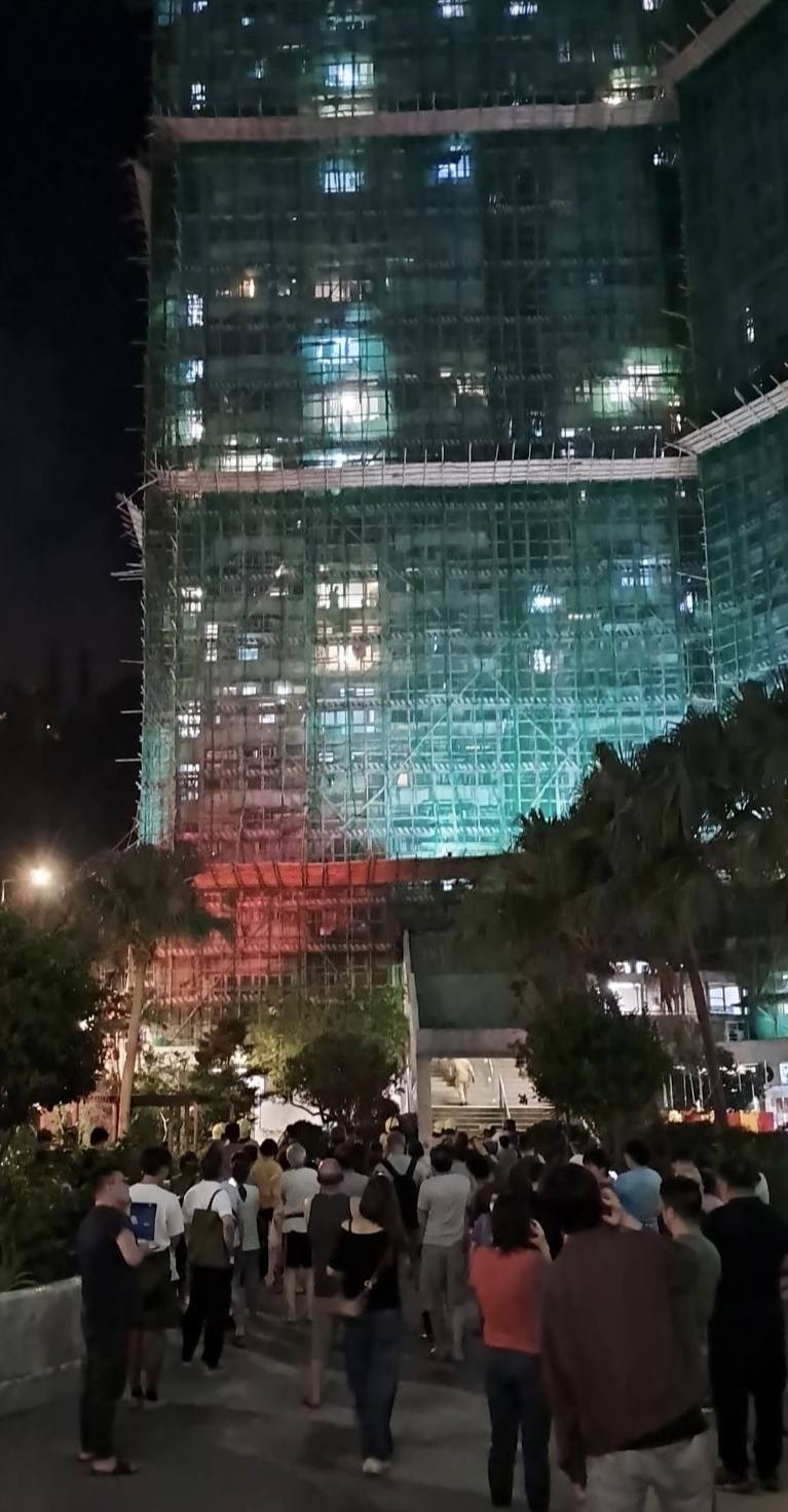 (多圖)峰華邨搭棚樓宇火警鐘大響 居民緊急疏散